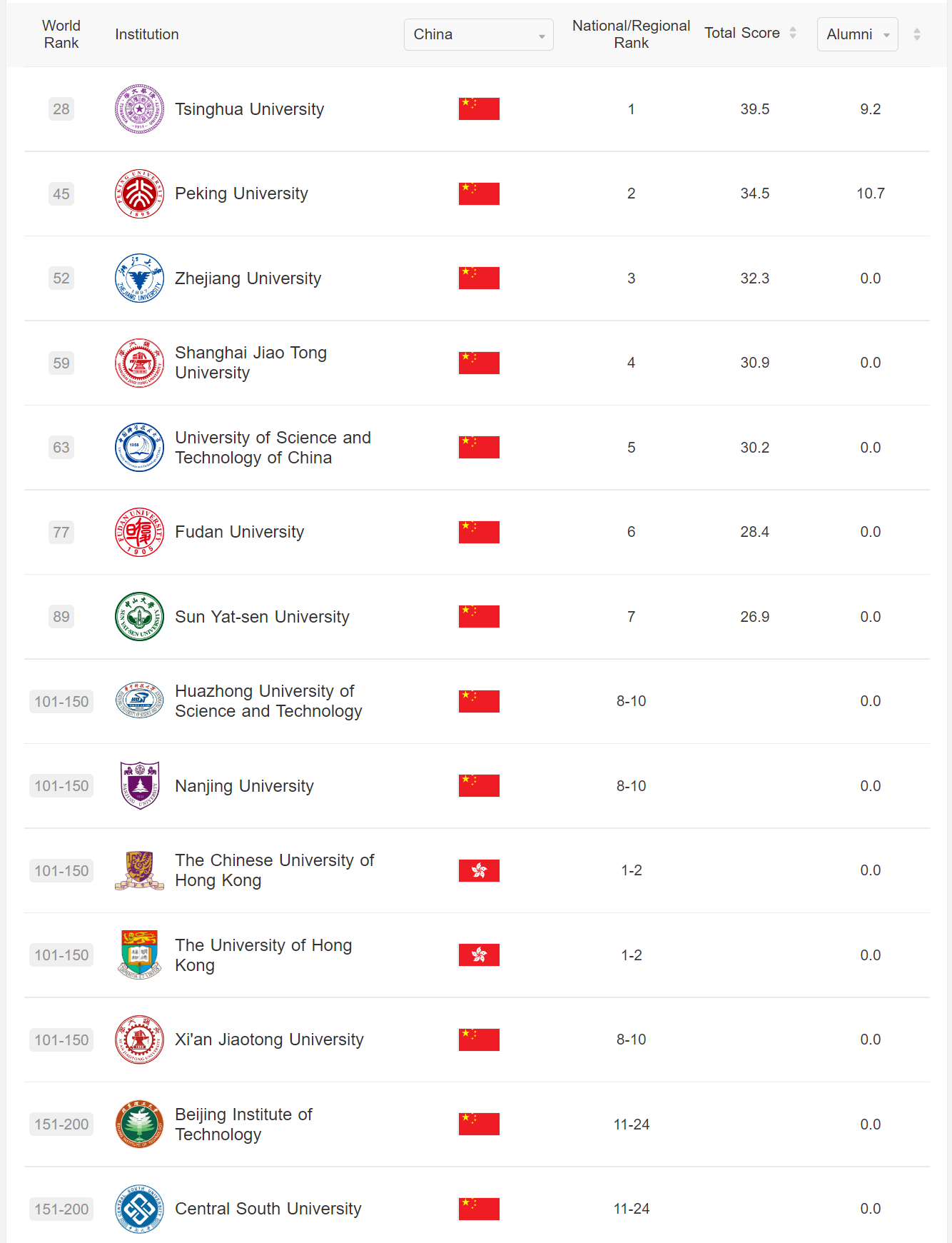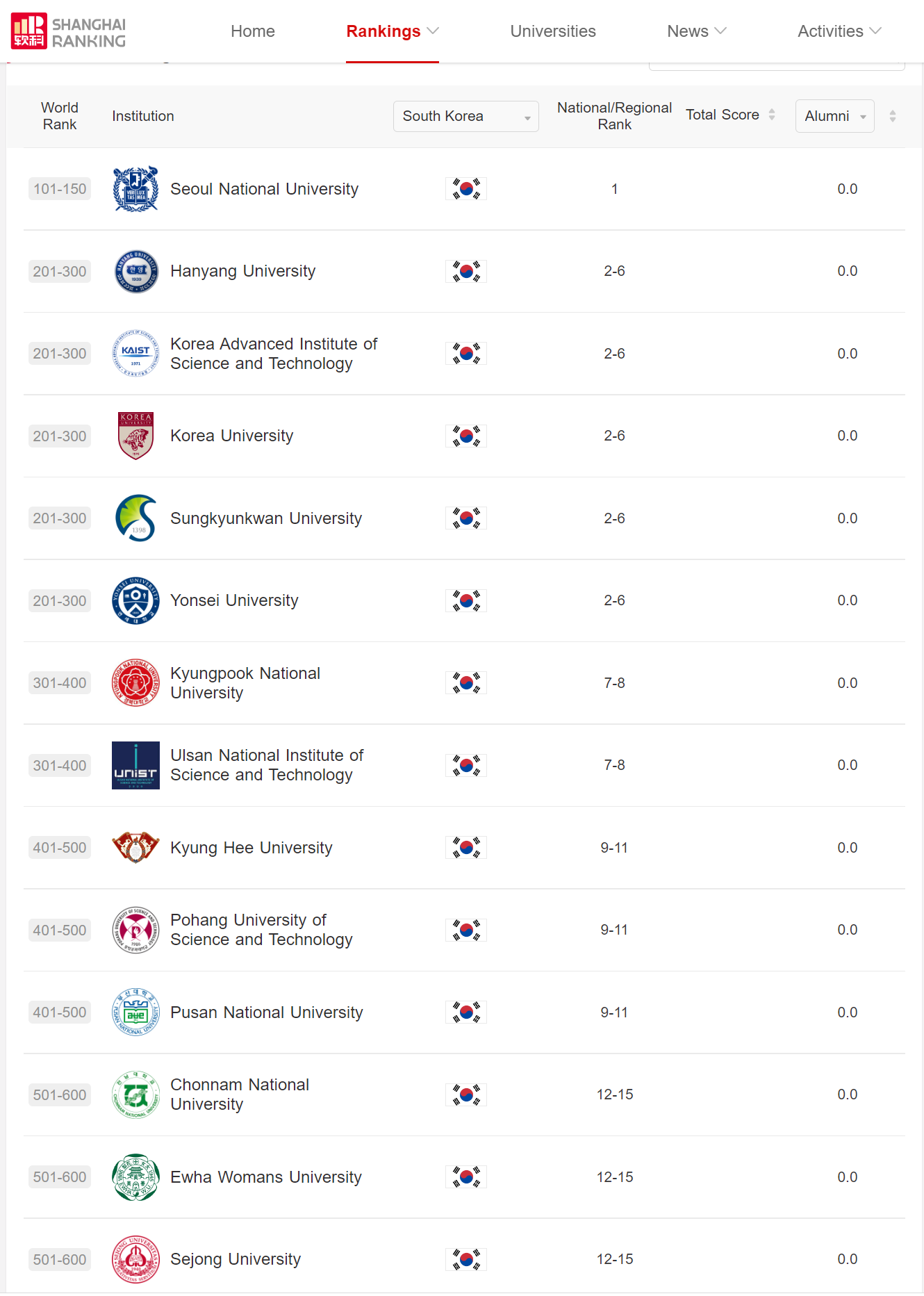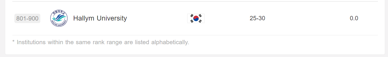 같은 201-300위처럼 같은 순위권에서는 ABC 순서로 배열된거니까 왜 한양대가 카이스트보다 높냐고 발작하지 마라..