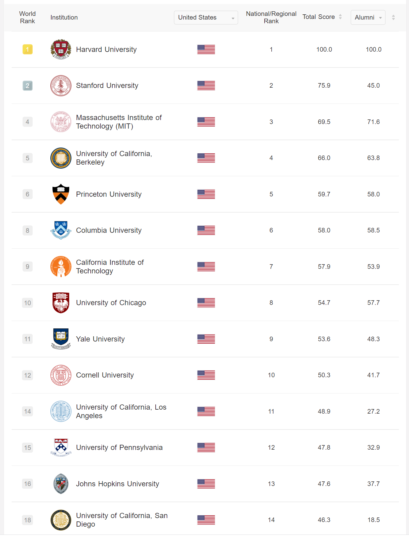 평가에 주관적인 요소를 쳐넣고 돈주면 순위 올려주는 QS, THE 순위와 달리 ARWU는 순수 연구성과만으로 순위를 매기는 랭킹이라 가장 신뢰할만한 랭킹임.