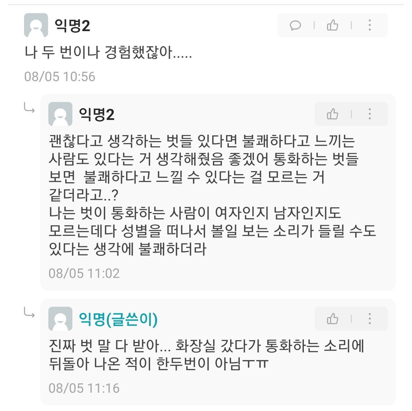 화장실에서 이성이랑 통화하는거 민폐라봄?
