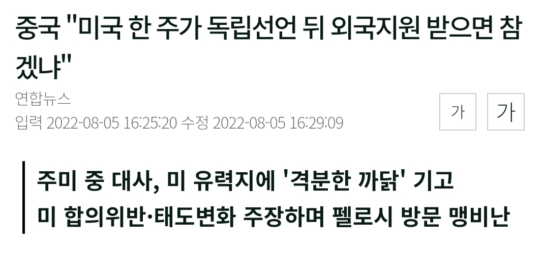 지금 미국이 중국에 하는 짓은 중국 입장에서, 마치 일본이 맘대로 제주도 독립시켜다 군대를 제주도에 파견하는 짓거리랑 다르지 않음