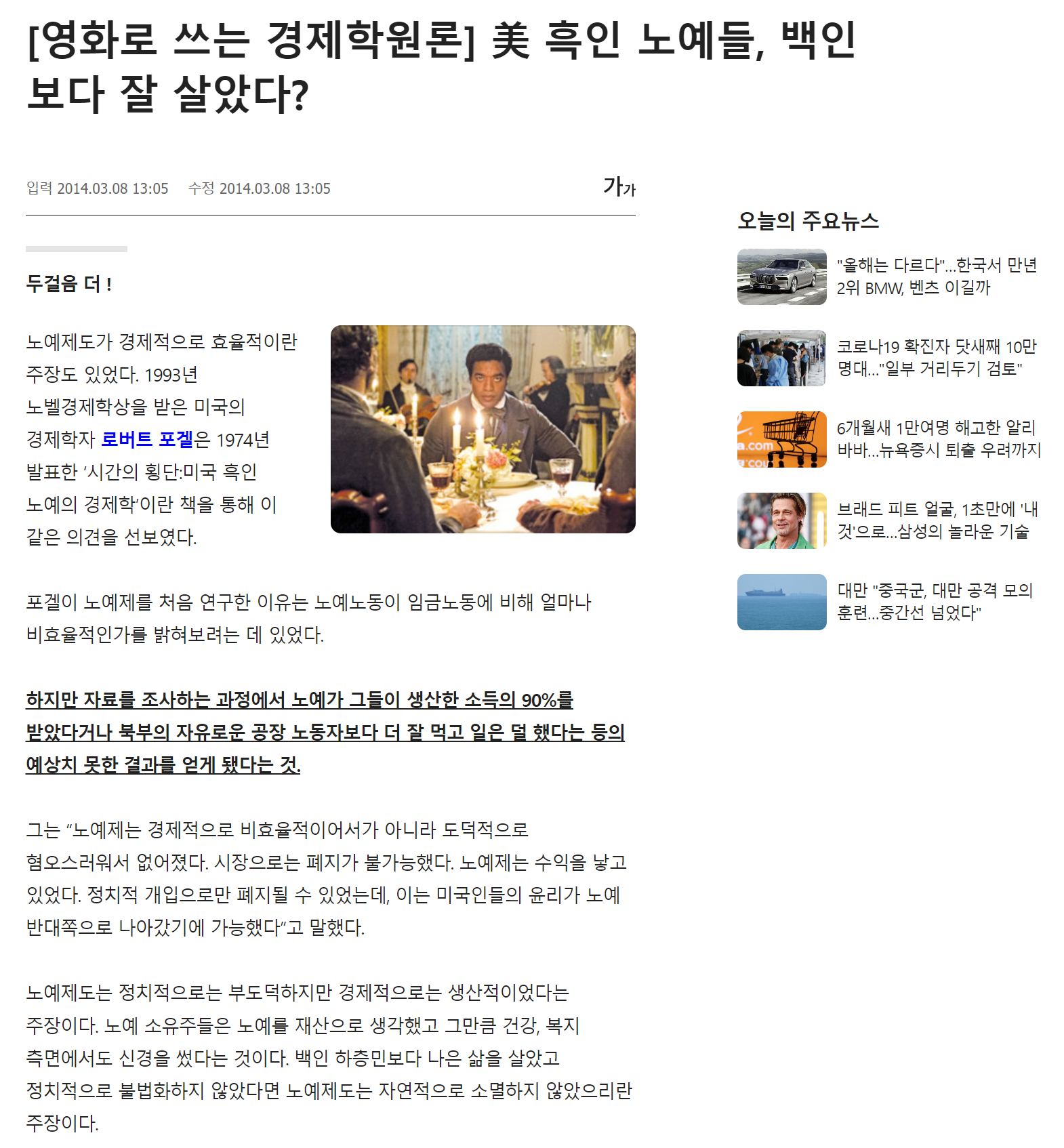 차라리 목화 농장에서 일하는 흑인 노예들 생활 수준이 백인 공장 노동자들보다 좋았음