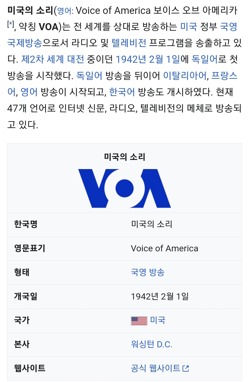 미국 국영방송 VoA에서 항문이 공개적으로 비판함..