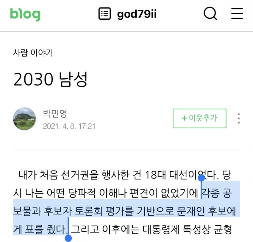 네이버 블로그도 있음..게다가 문재인에게 표를 줬다고 한다
