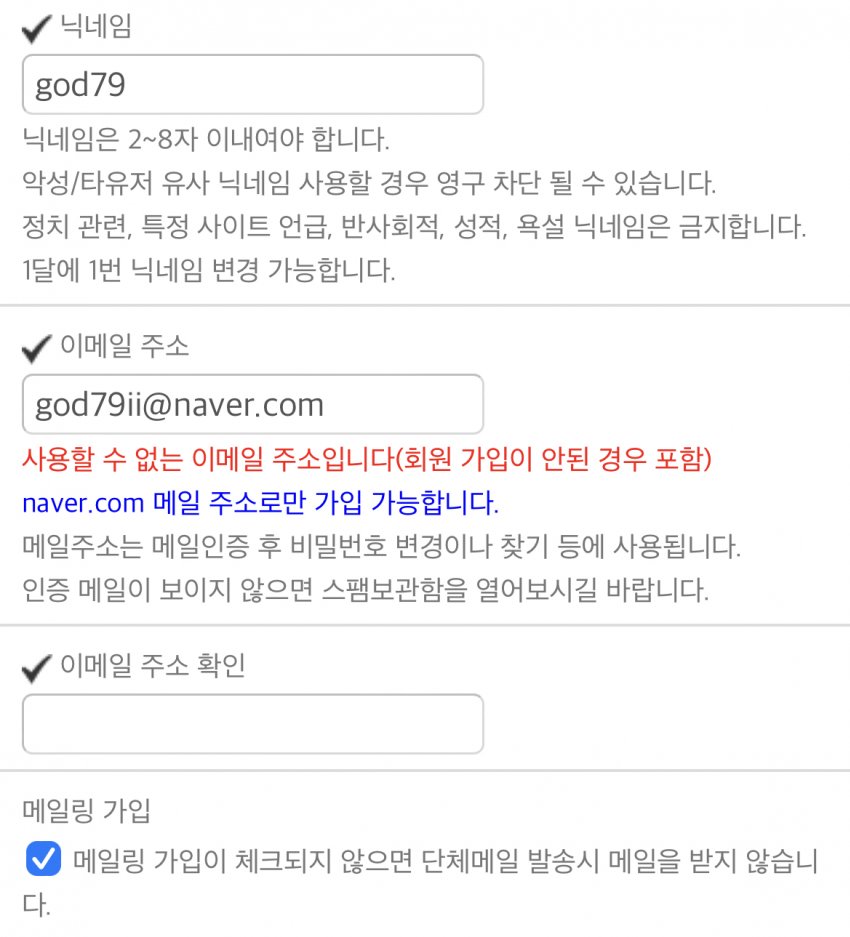 왜인지는 모르겠지만 해당 이메일 주소로 펨코랑 일베도 가입이 안됨..
