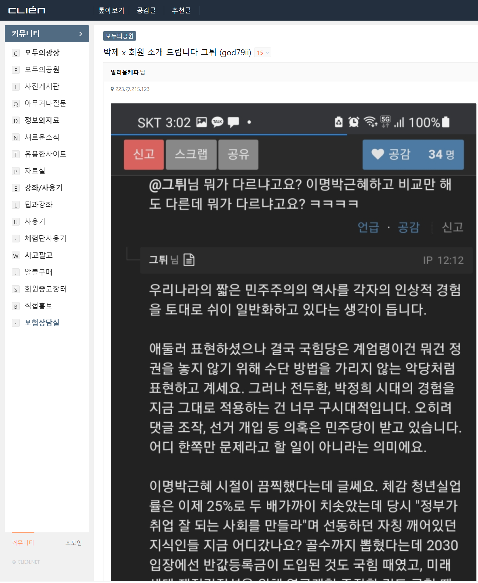 클리앙에서도 활동하다가 박제당한 전적이 있다 ㅋㅋㅋ