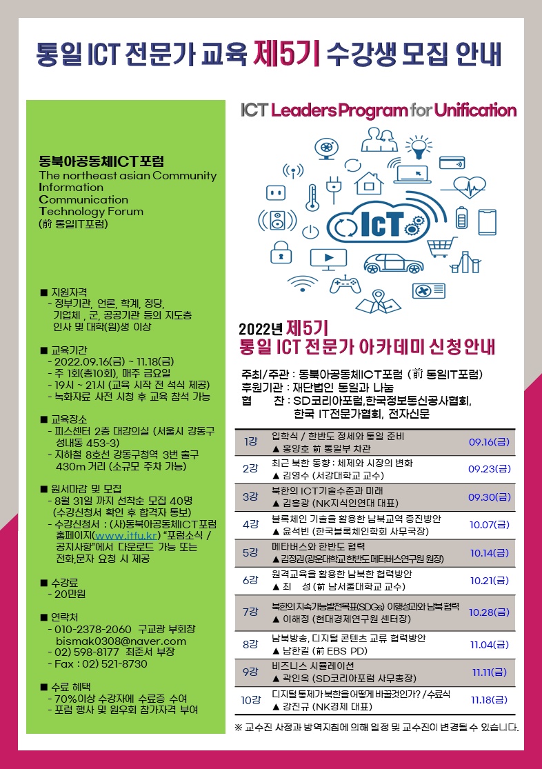 [통일 ICT 전문가 교육 제5기 수강생 모집 안내]