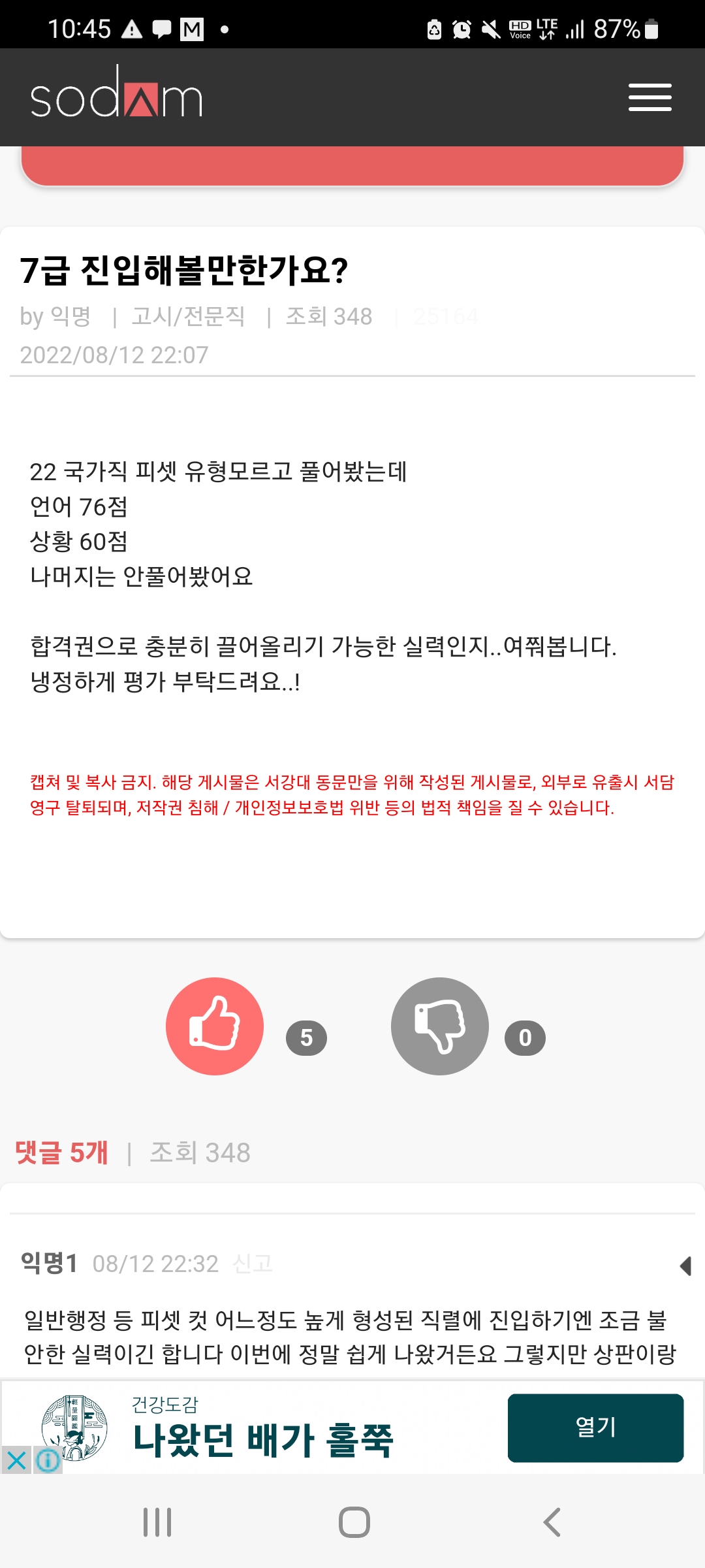 삭제되는 줄 알고 올렸다가 제 점수가 영구박제되는 줄 모르고 올렸네요. 삭제부탁드립니다.ㅜ