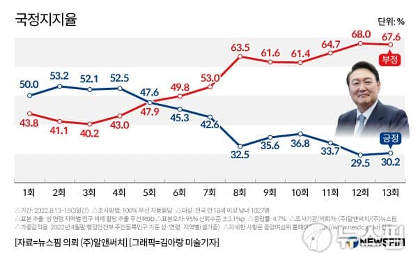 첫번째 여론조사와 동일한 기관에서 같은 기간동안 조사한 지지율 추세인데 이게 대깨...?