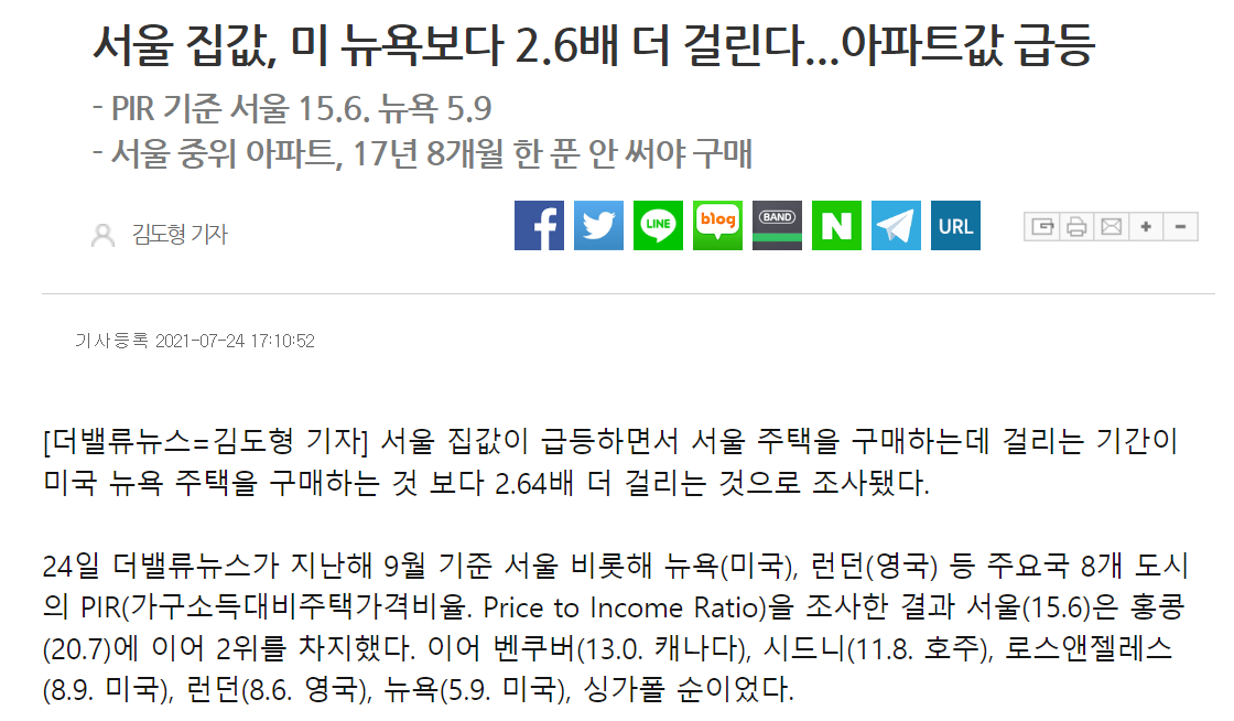 연봉대비 집값도 뉴욕보다 2.6배 높음..