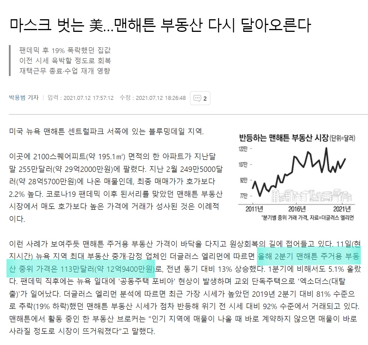 맨해튼 평균 집값이 13억임 ㅋㅋㅋㅋㅋㅋ