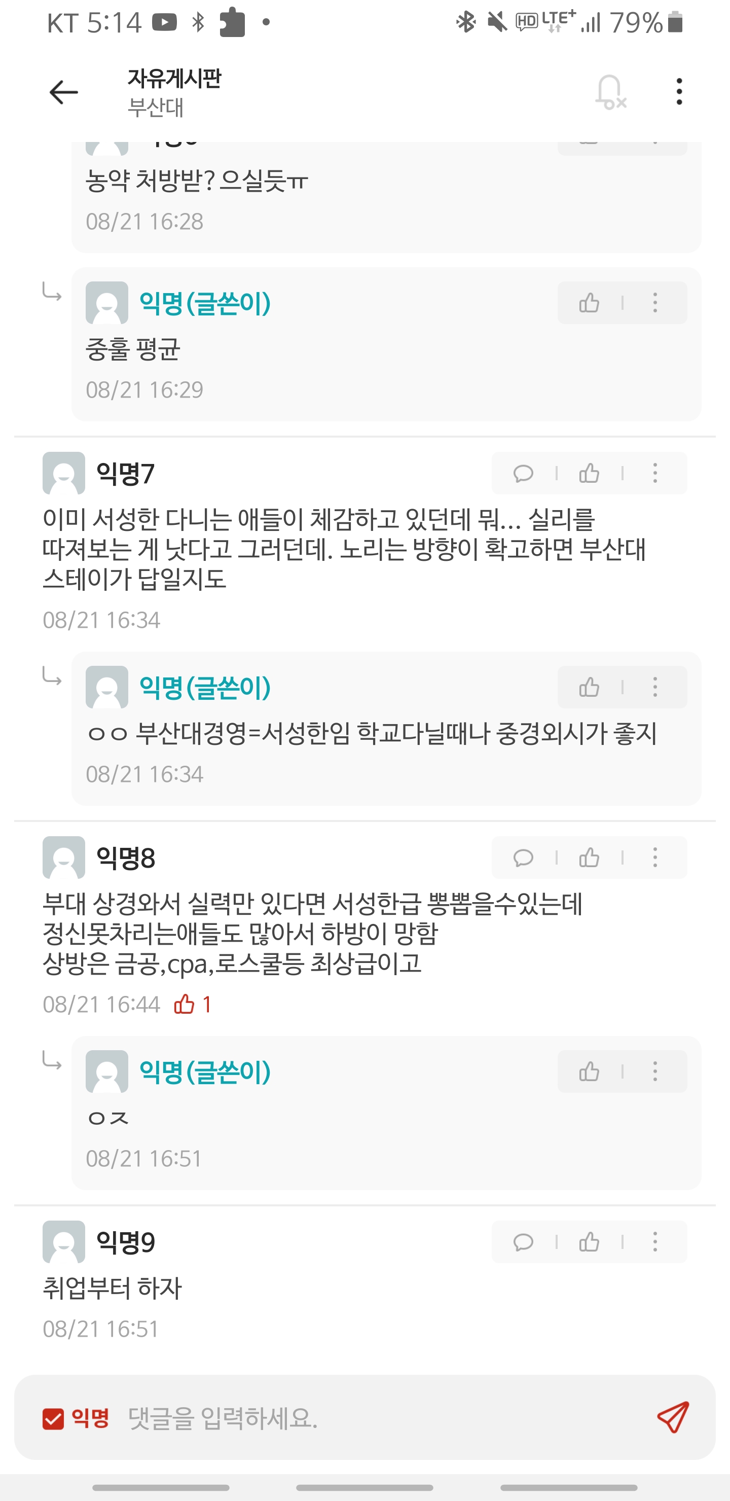 난 동의한다. 글고 어차피 서울 사람들은 부산대가 진짜 서강대급 되도 부산대 잘 안가려하니깐 크게 유의미하지도 않어