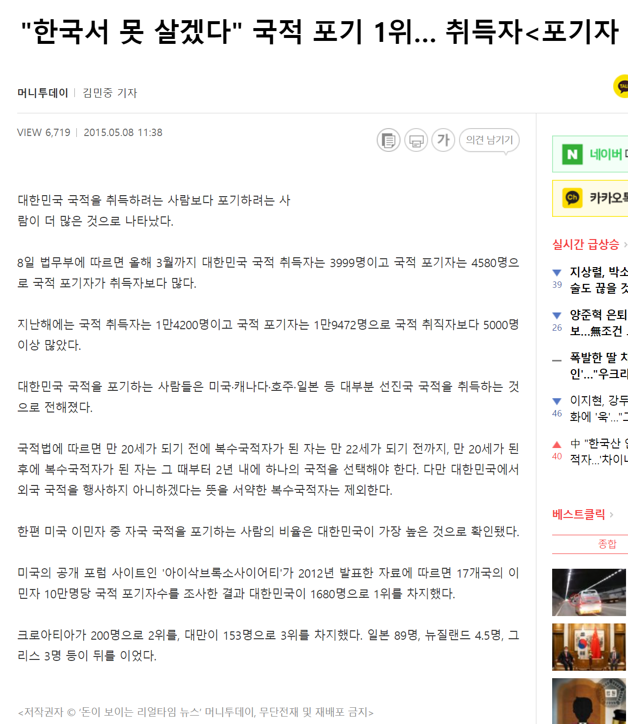 문장 좀 고치려고 그런건데 뭐 안됨? ㅋㅋ;; 고위급 상류층 자식들이 미국 보내는 이유는 이 나라에 미래는 없기 때문이고, 앞으로도 상류의 삶을 유지하기 위해 가는거지. 하지만 나 같은 중산층도 한국에 계속 있다가는 베네수엘라 난민 될 것이 뻔한데 상류의 삶을 누리지 못하더라도 미국 서민이 베네수엘라 난민보단 낫지 않겠음? 그리고 난 CS로 준비 중인데 폐지 줍는 것보단 낫다는건 그만큼 한국의 미래가 없다는거지 내가 진짜로 미국에서 폐지 줍는단 말이 아님