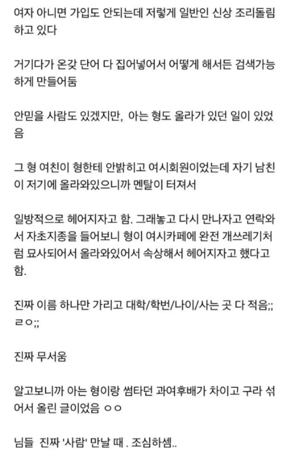 일베보다 훨씬더 악독하지 적어도 일베는 오픈되어있고 익명으로 욕이나 배설하는 곳임