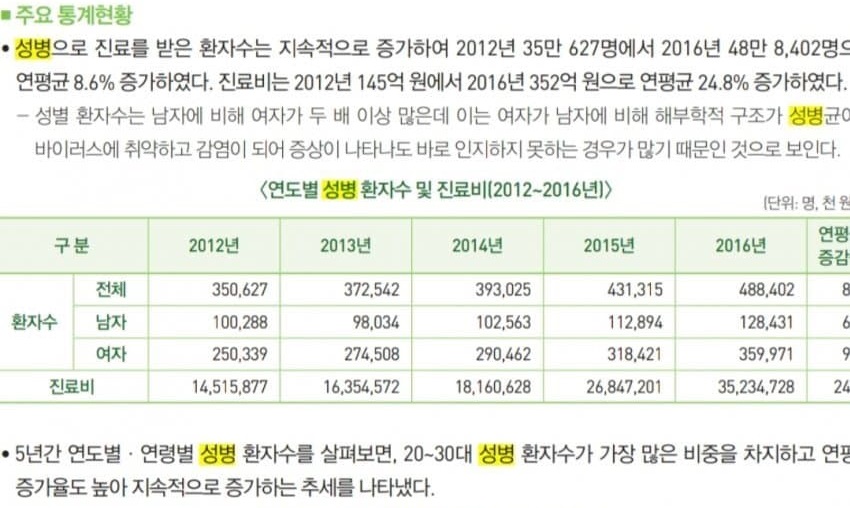 여기 들어가서 보면 알겠지만, 여성 성병환자 수는 남성의 2배수준으로 위에서 나온 짤과 결과가 일치한다.