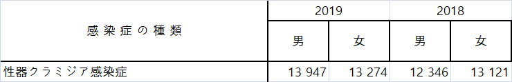 클라마디아의 경우 후생성에서 레이와 원년(2019)과 헤이세이 30년(2018) 조사결과만 공개하고 있다.