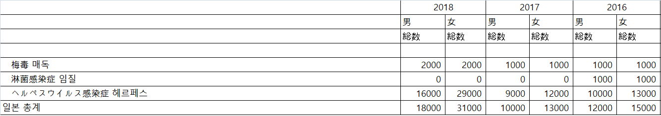 아까 일본자료에서 볼 수 있었던 임질, 헤르페스, 매독, 클라마디아 자료를 살펴보자