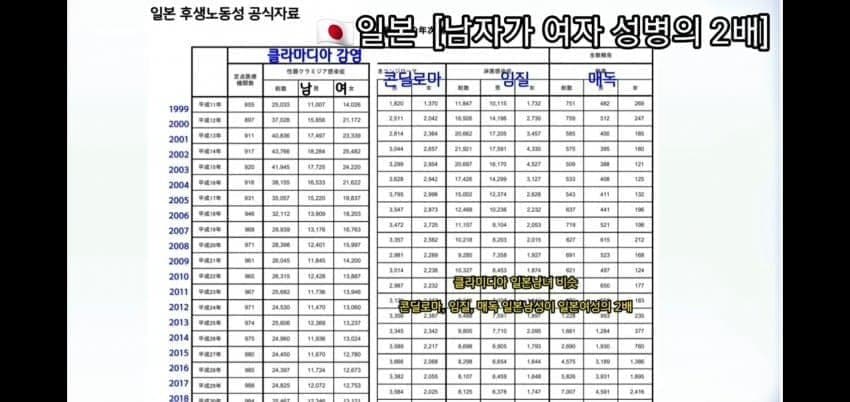 임질 매독의 경우 일본남성이 일본여성의 2배라는 위의 짤과는 위배된다.