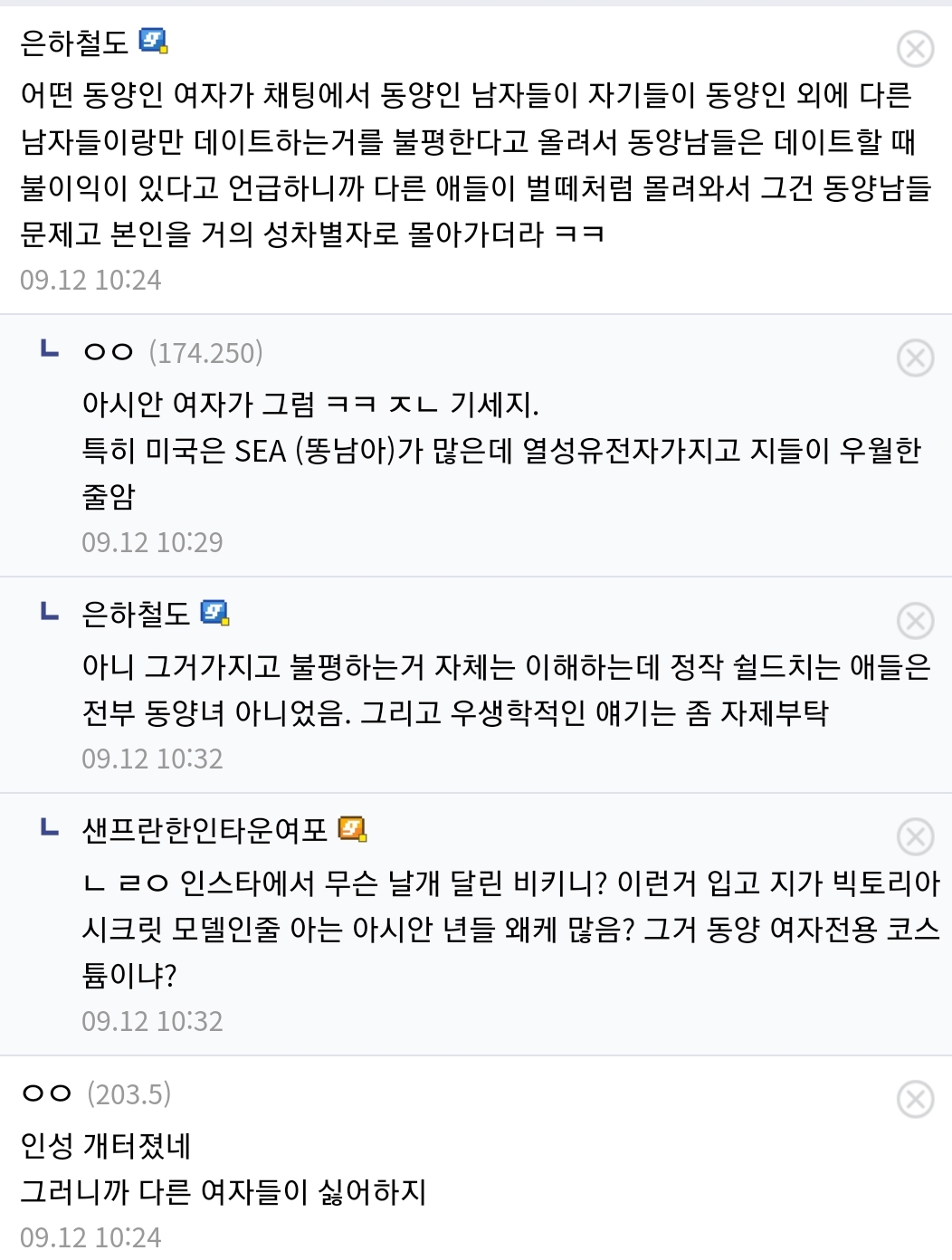 ㄹㅇ 미국에서 지들이 백인인줄 아는 동양 여자들 개많은가보네 ㅋㅋㅋㅋ 상상하니까 ㄹㅇ 개역겹노
