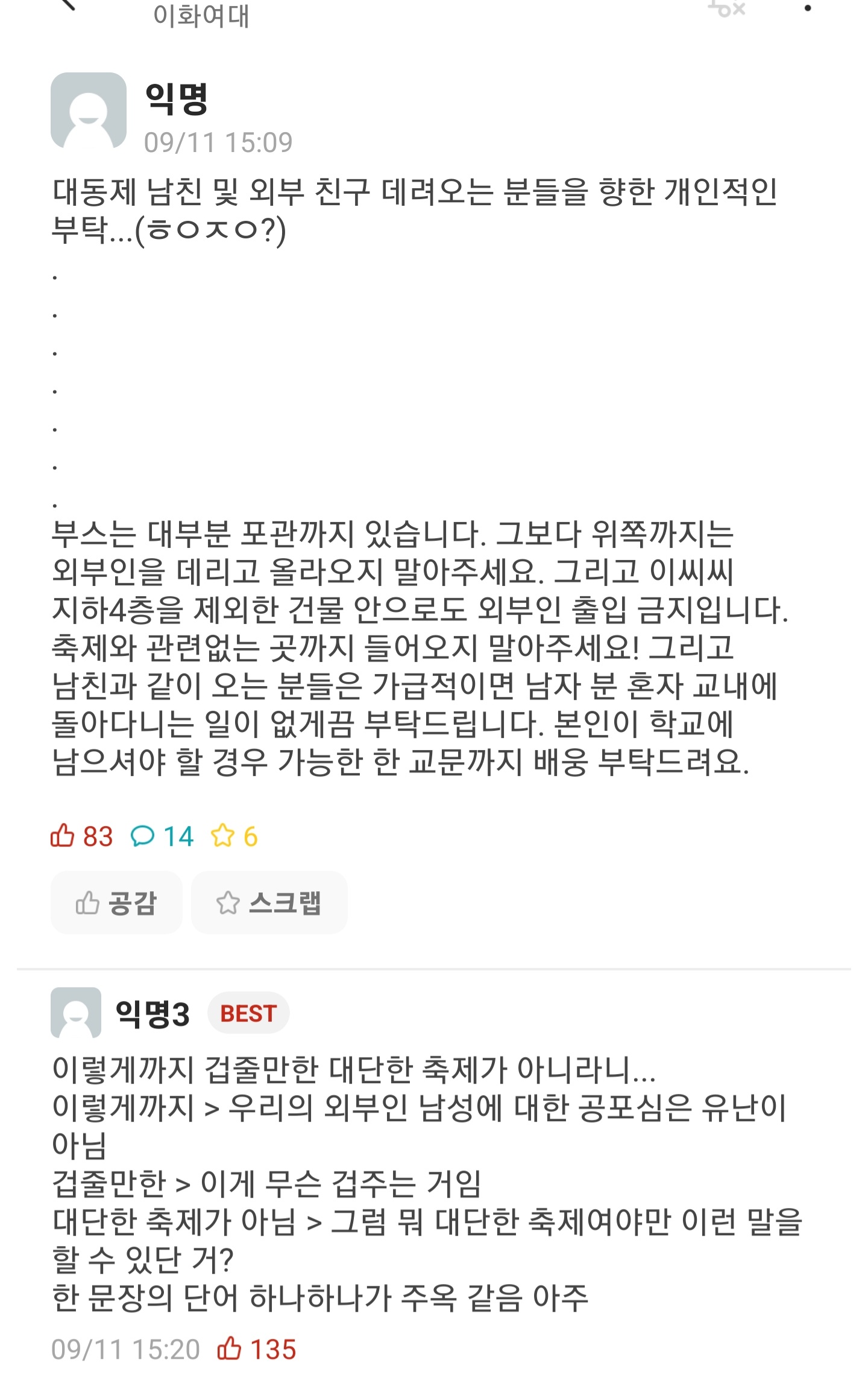 근데 교수가 돌아다니는지 외부인이 돌아다니는지 어케알고 남자만 콕집어서 저러냐 ..