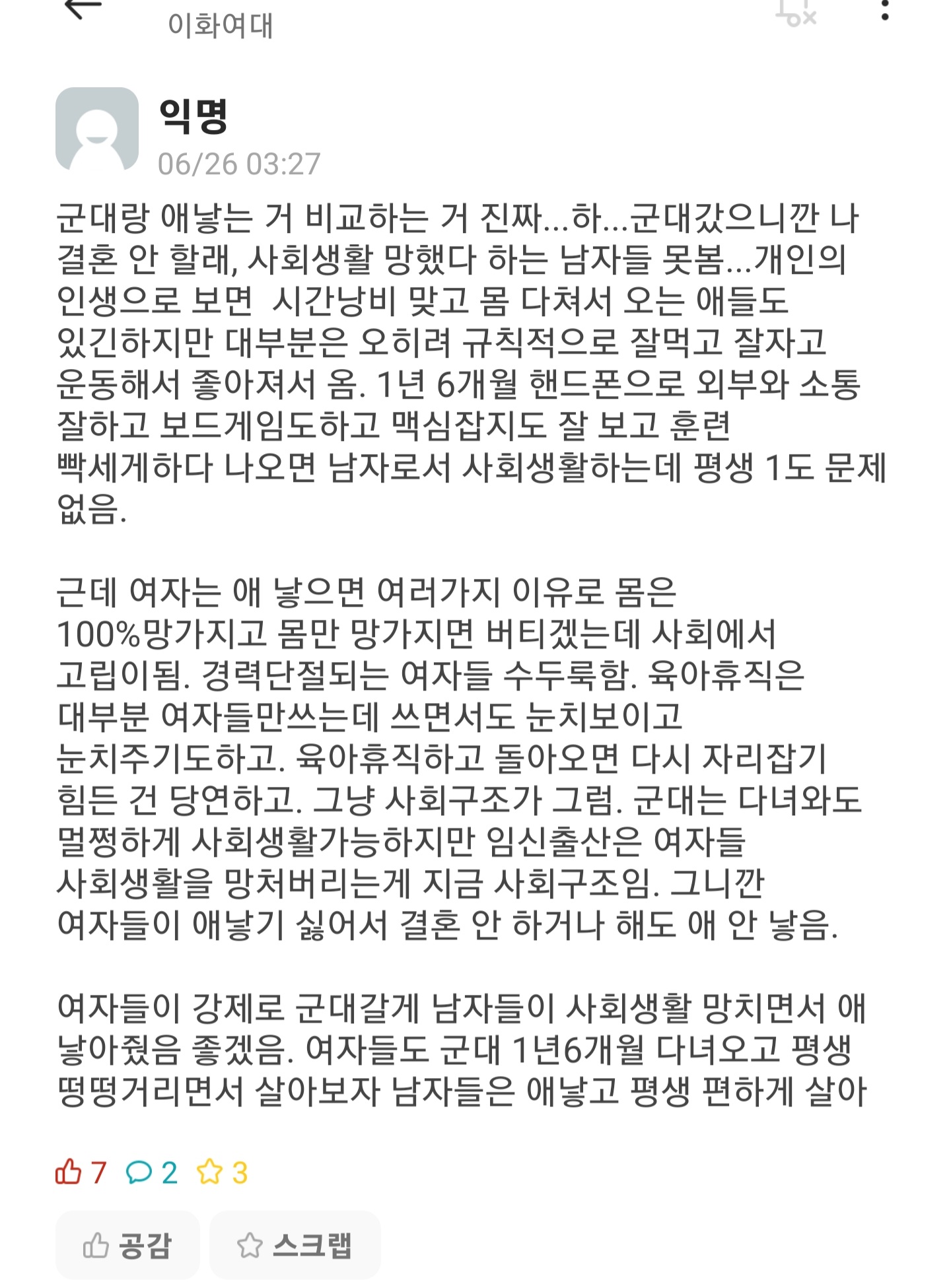 군대가서 뒤지거나 병신되서 나오는 사람들이 얼마나 많은데 ㅋㅋ 역시 이대는 믿거