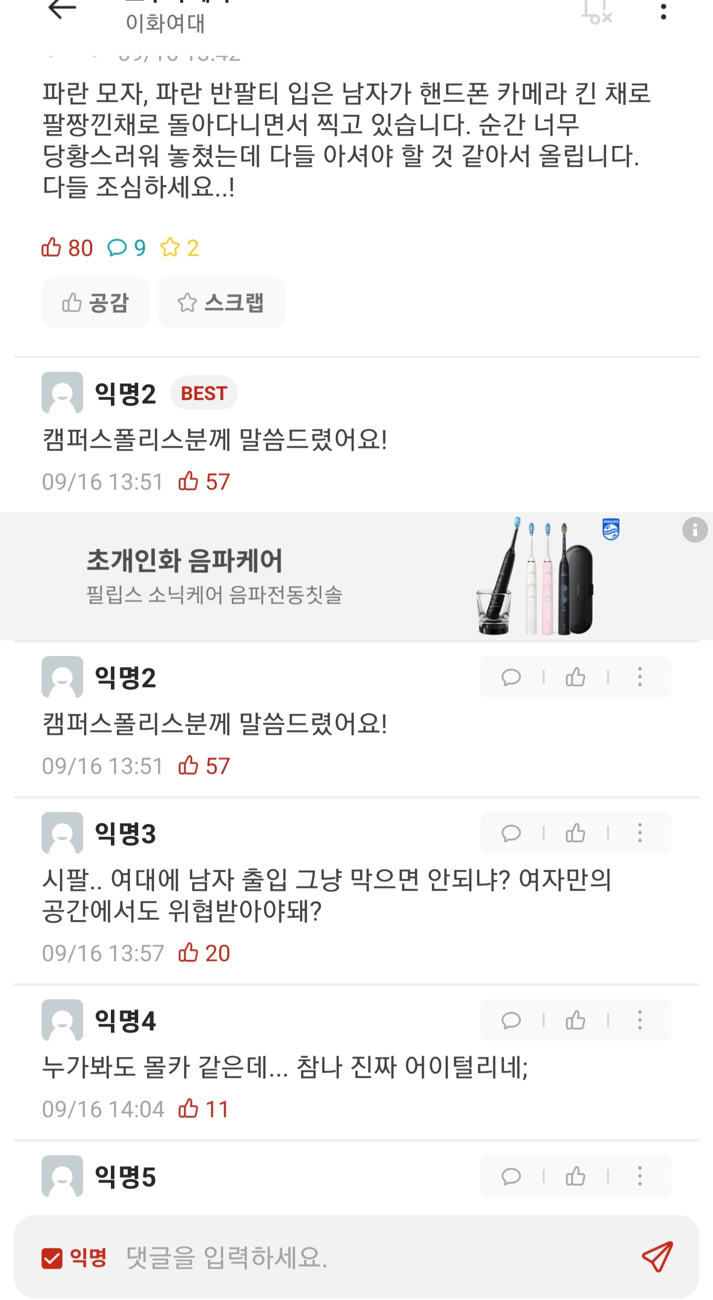 한남 피해서 온건데 한남이 몰카찍고 돌아댕기면 무섭겠지;;