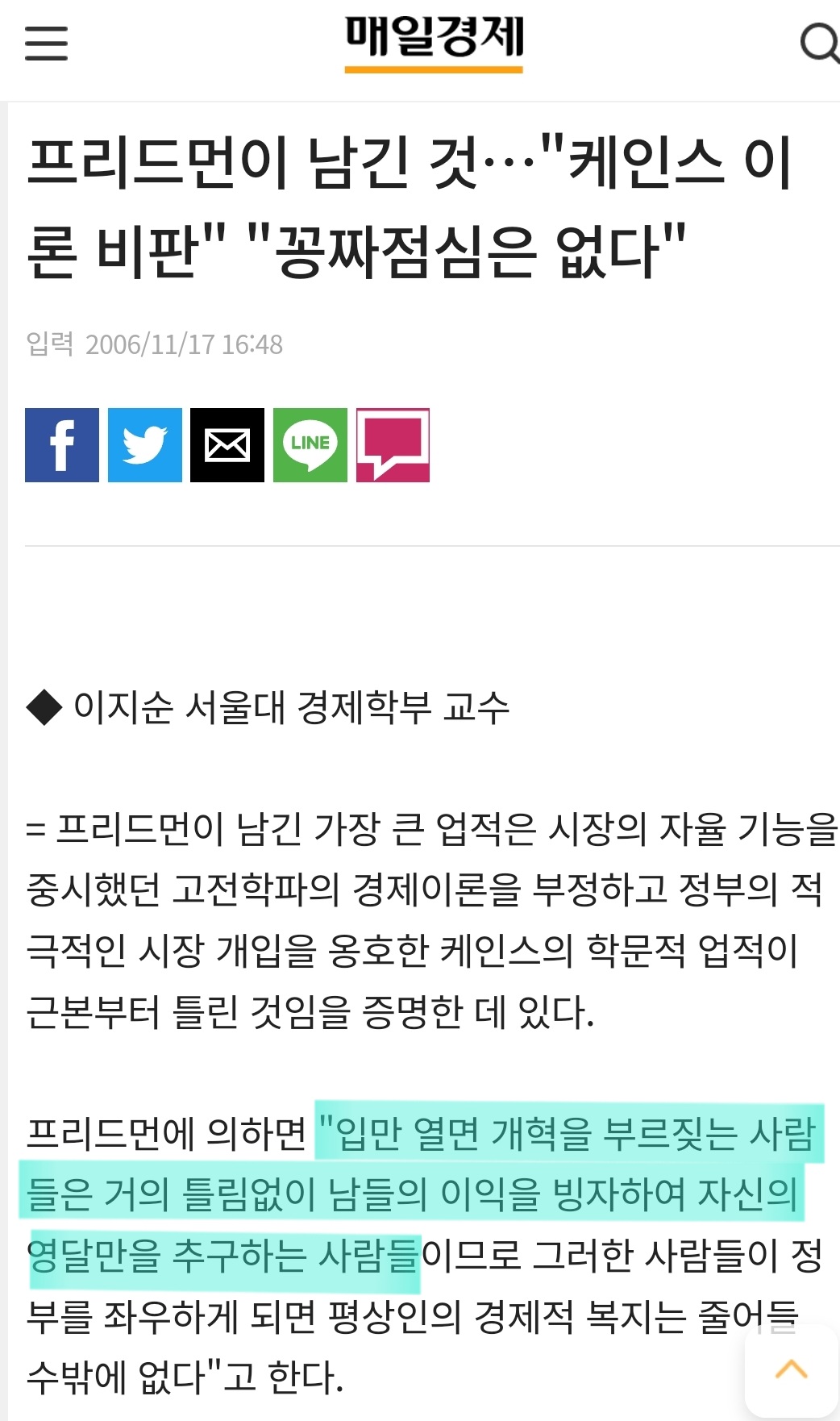 프리드먼이 저 말을 한 배경이나 알고 지껄여라. 말를 해줬는데도 이해를 못하네. 맥락, 배경 무시하고 니 좆대로 인용하면 이런 반응 밖에 안나오지 당연히. 아님 윤석열이 모르는 사이에 시장개혁이라도 하자고 했냐?