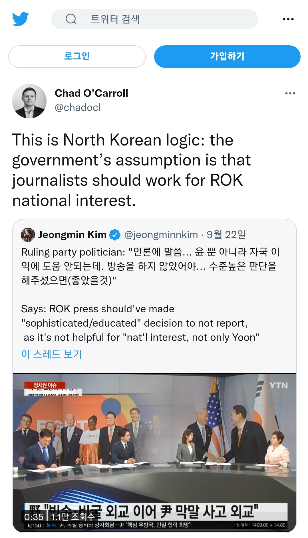 북한전문 뉴스 NK NEWS의 CEO인 Chad O'Carroll가 북한과 다를게 없는 남한의 항문이에게 일침함 ㅋㅋㅋ