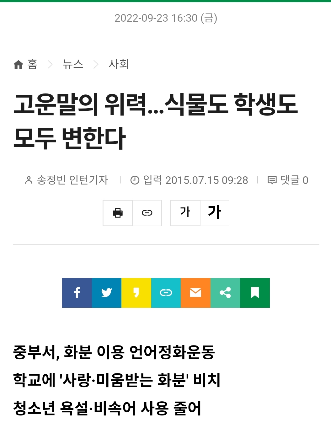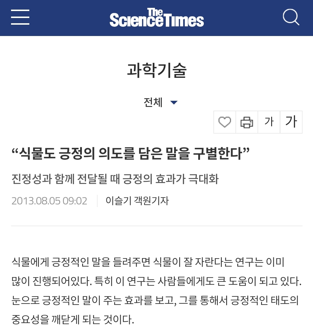 얘들아 식물한테도 고운 말을 쓰면 잘자란대