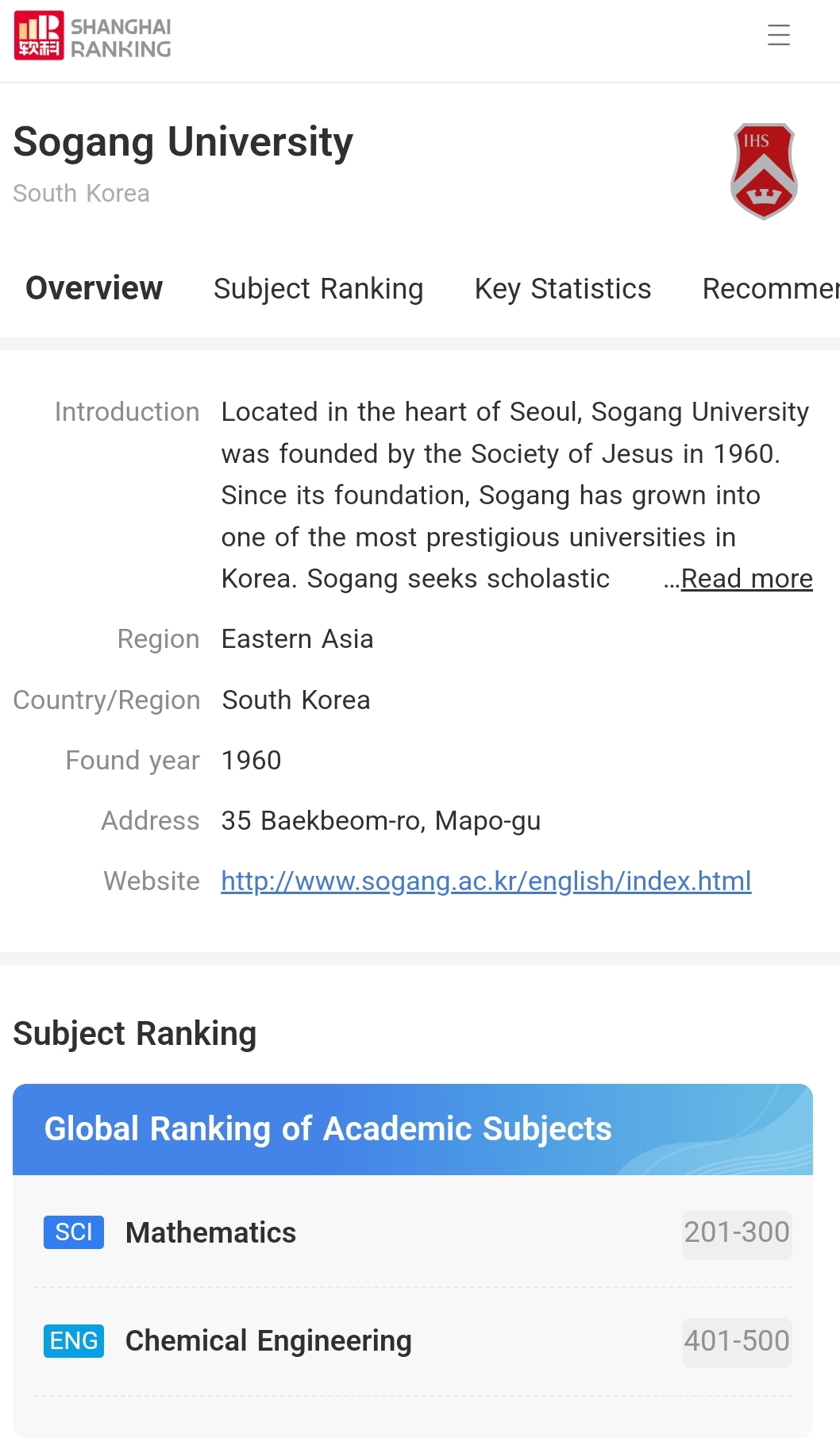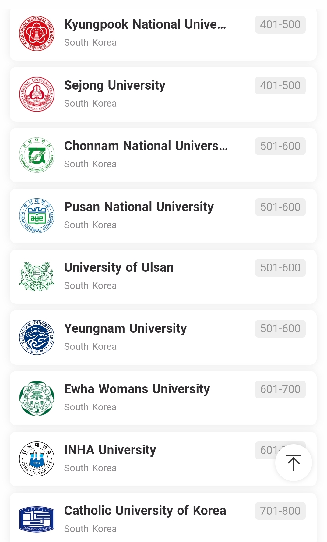 글고 서강대는 세계에서 1000위 안에 드는 분야가 수학, 화공 밖에 없어서 전체 순위로는 1000위 밖이라 안보임