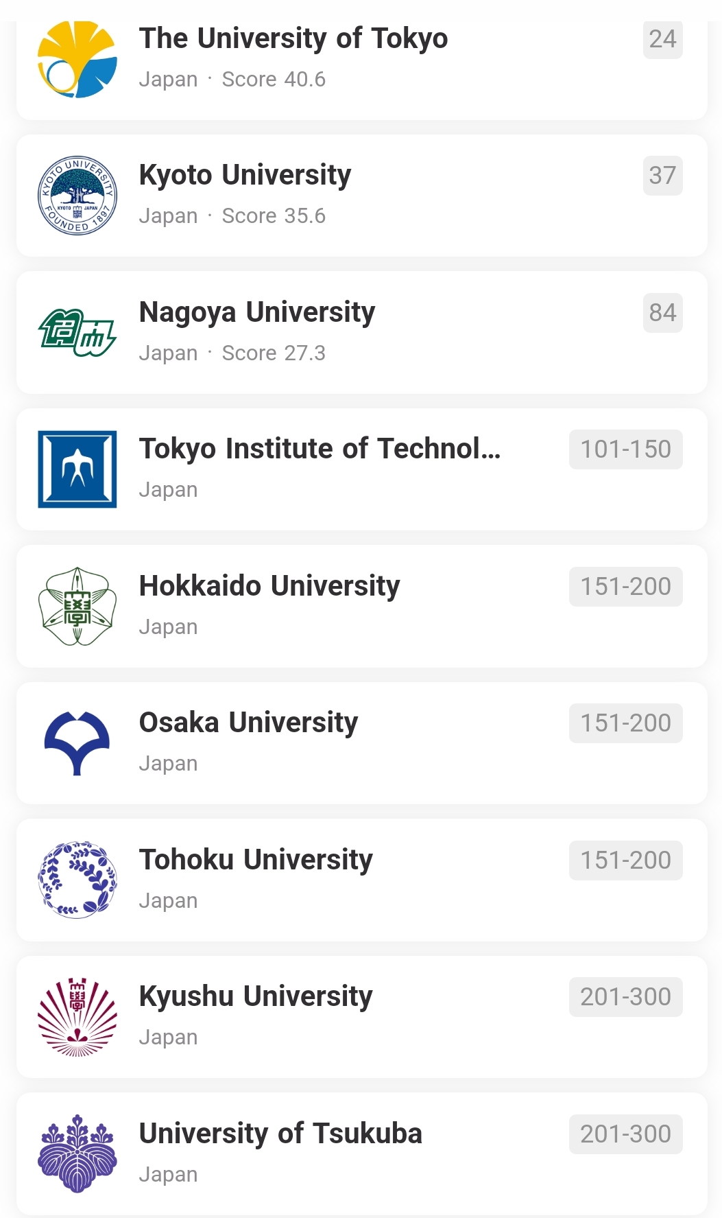 세계 1~26위와 일본 대학 순위 일부도 올려 봄