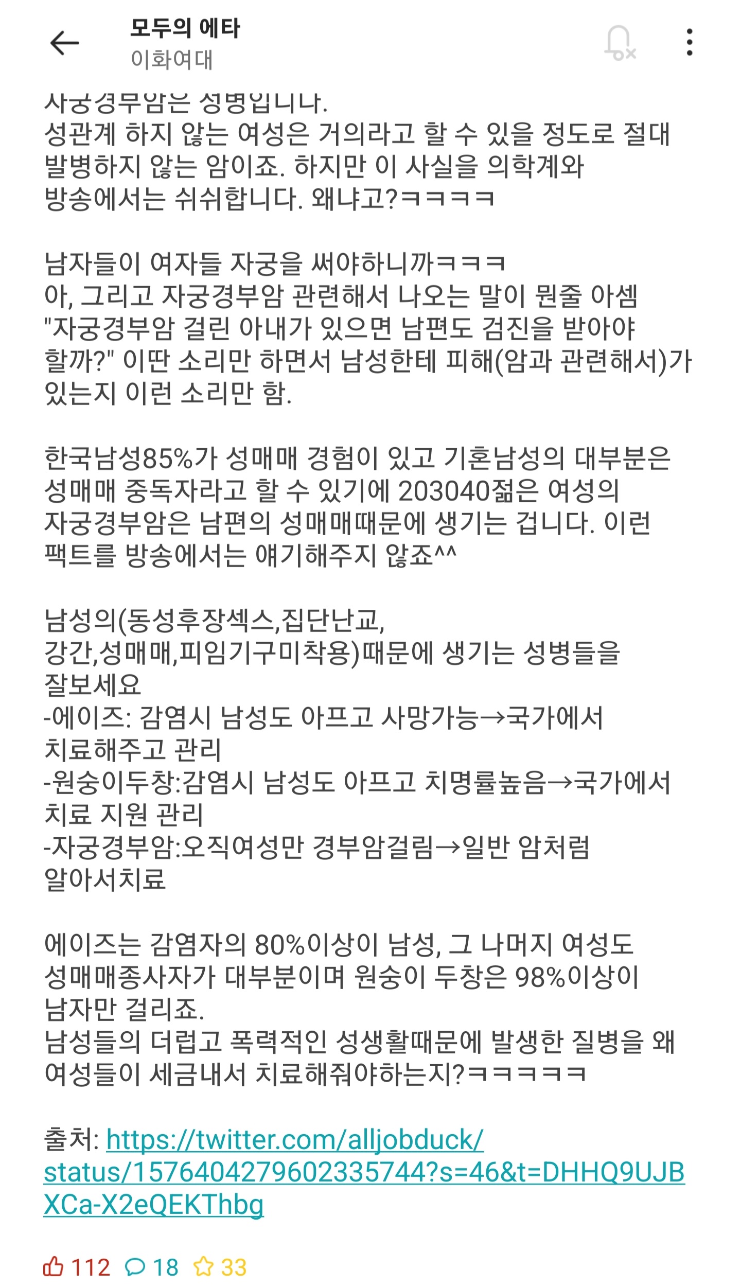 정게에서도 성별 반대로 저런 대가리 박살난 소리하면 욕을 먹을텐데