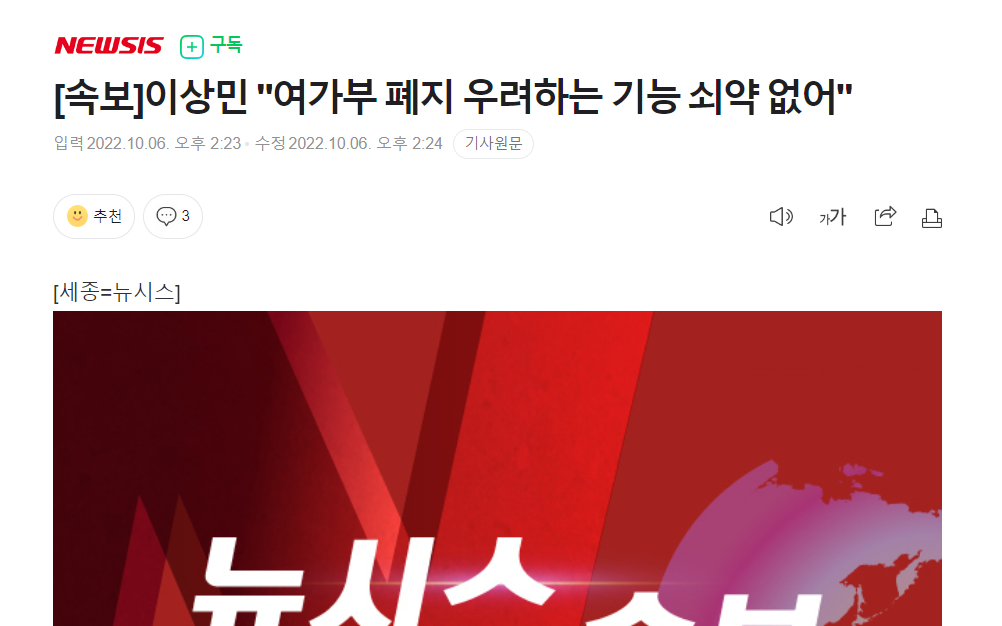 [속보]이상민 "여가부 폐지 우려하는 기능 쇠약 없어"