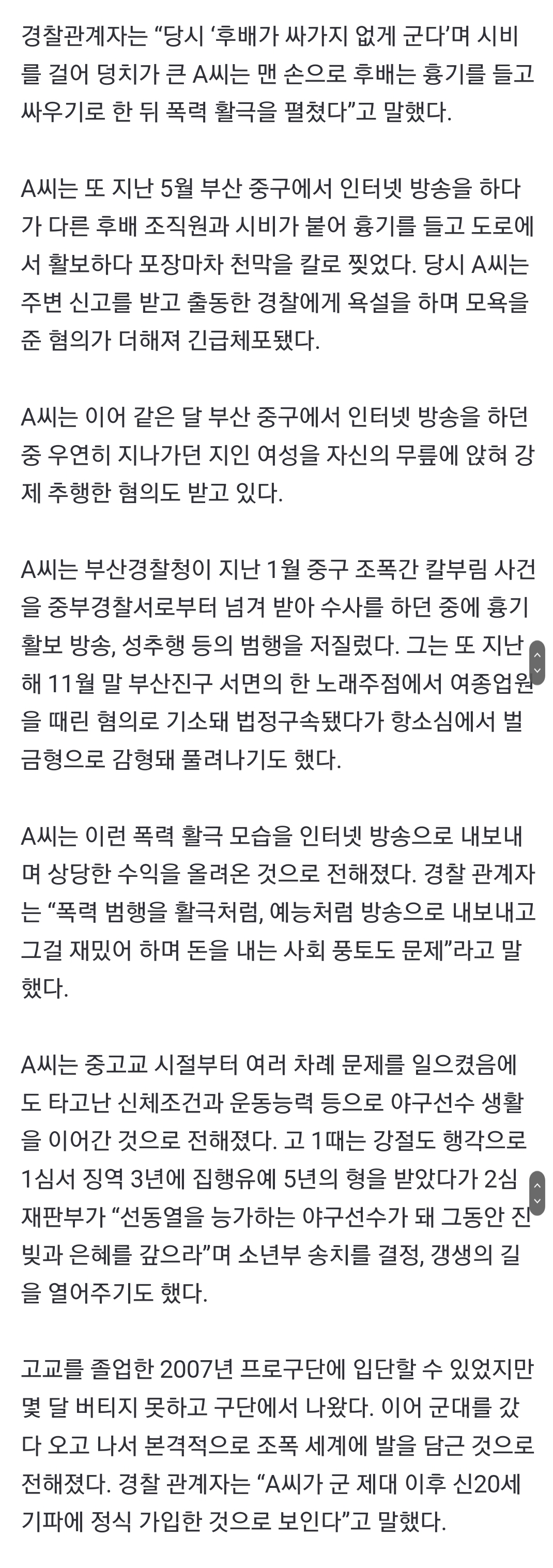 뽑히고 언론에서 sk랑 대하이햄을 쓰레기 취급하면서 너무 패니까 sk가 어쩔수없이 대하이햄 임의탈퇴 처리하고 군대 현역으로 먼저 갔다오면 여론 상황 봐서 추후에 다시 데리고 올려고 했는데 대하이햄이 군대 전역하고 야구로 안 돌아오고 조폭으로 빠져서 프로생활 끝난거지.