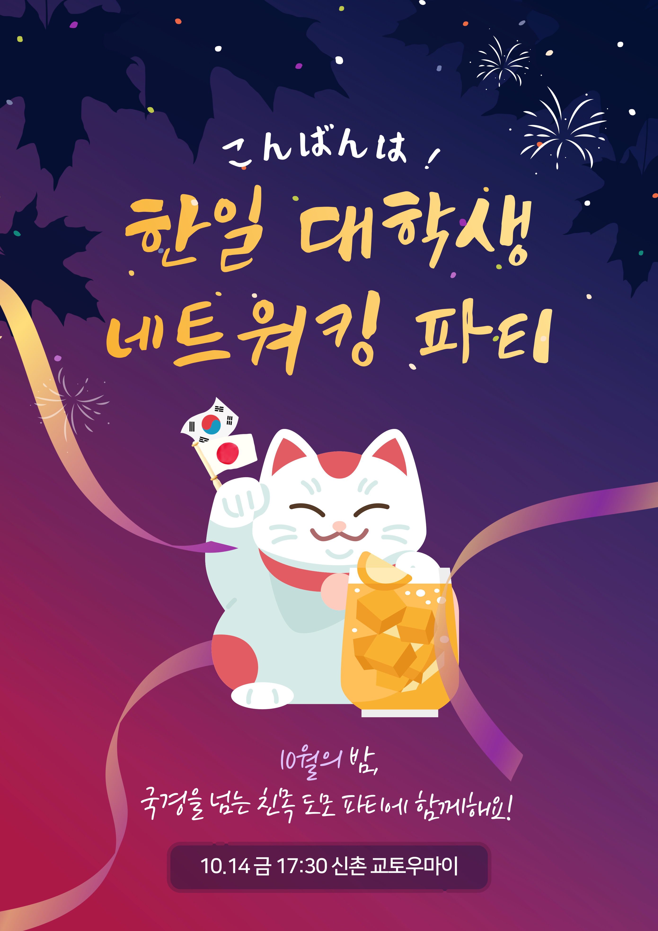 10월 14일 금요일, 신촌 교토우마이에서 대학생 연합동아리 나무넷 주최 ☆한일 대학생 네트워킹 파티☆가 열립니다!