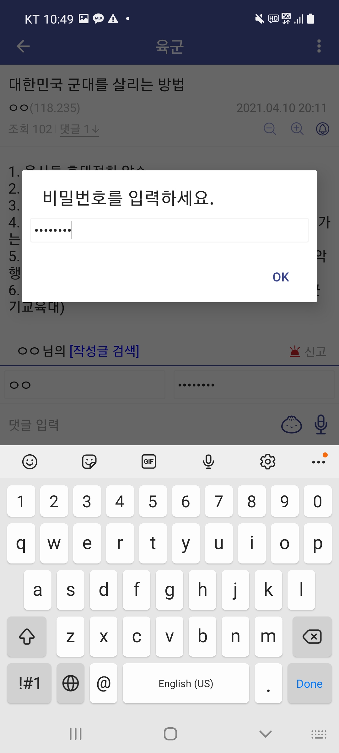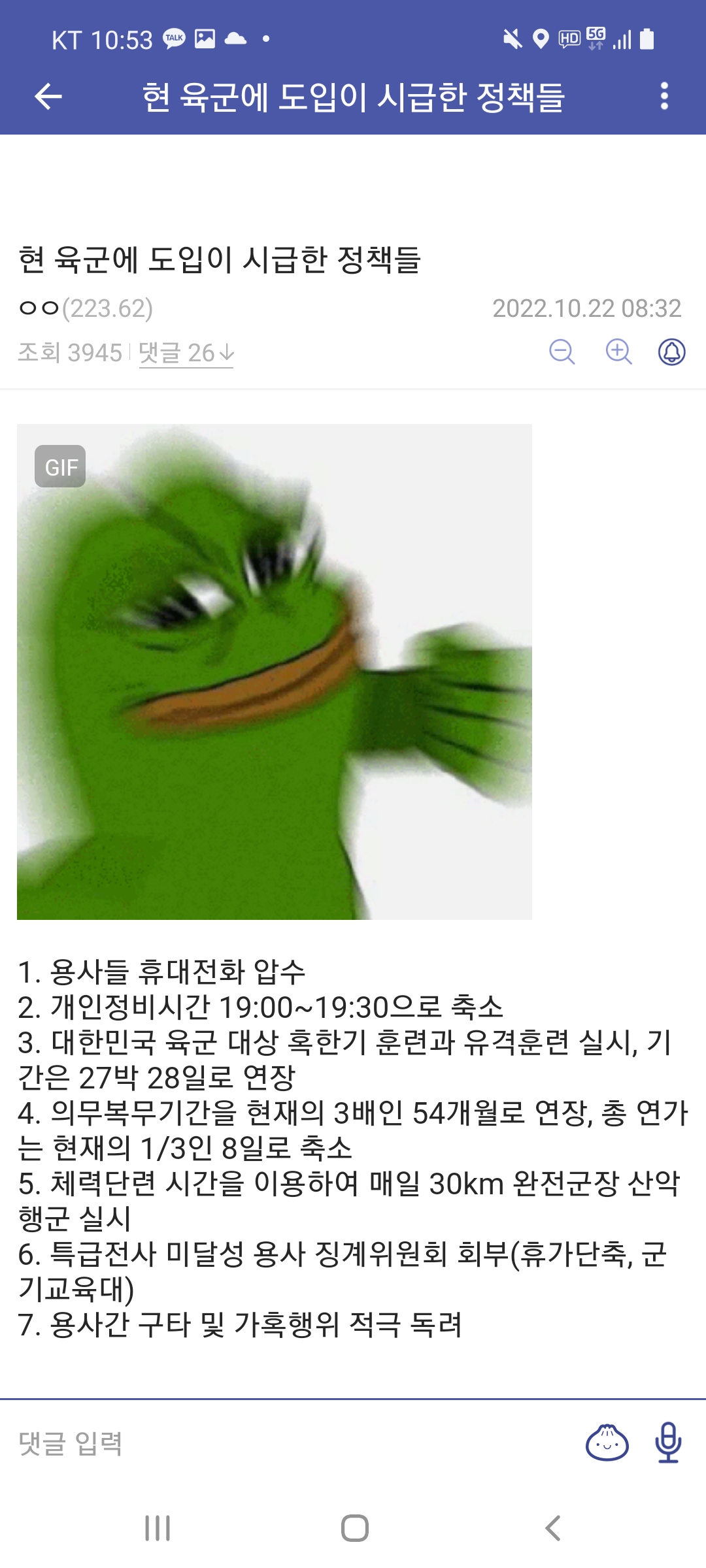 심심해서 폰 내기 전에 육갤에 개 똥글 하나 싸고 갔는데