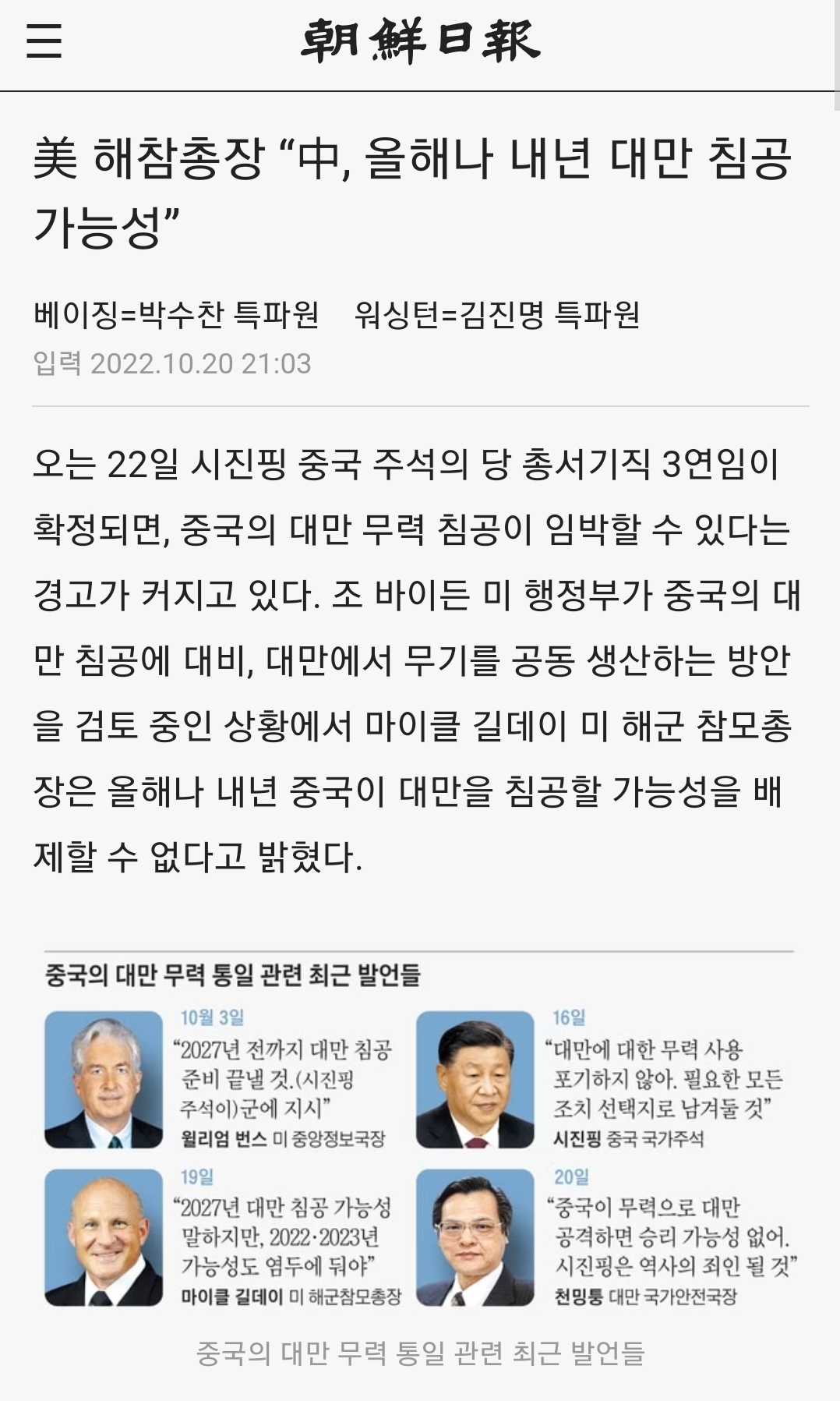 근데 대만이랑 중국이랑 전쟁하는데 우리나라가 알바임? 참전하겠냐? ㅋㅋㅋ 미군 뒷바라지(군수물자나 항구제공 등) 정도야 할지몰라도 예비군게이는 그냥 집에서 부랄긁고있어도 무방할듯