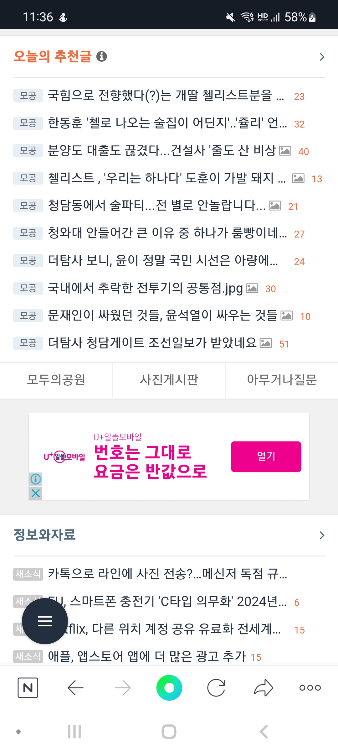 정확히 말하면 찢에 대한 옹호보다는 건희 욕하고 한동훈 룸쌀롱 갔다는 뉴스타파 보도 퍼나르고 개딸 간증문 올라오는 게 인기글 다 차지함. 물론 이재명 욕하거나 윤석열 칭찬하면 여전히 빈댓 테러에 욕 쳐먹는거 그대로인데 재명이 후장 빨아주는건 그나마 좀 준듯...