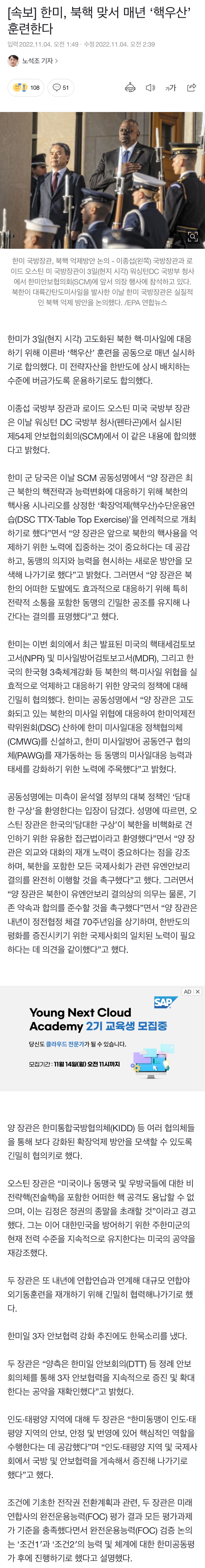 글쓴이 정게 지박령임. 한미엽합훈련이 핵심이라고 나도 말했는데 할말 없는지 그 댓만은 상큼하게 씹더라. 무시해라 ㅋㅋㅋㅋ
