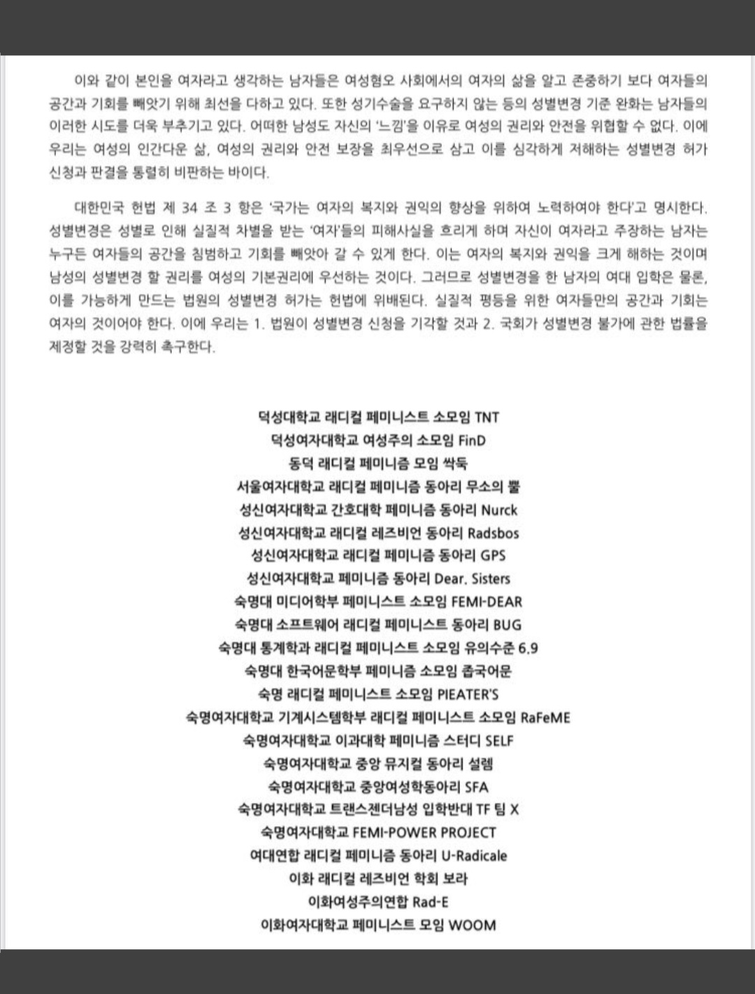 익2 진짜 페미? 저기 성소수자 혐오 하는 성명문에 박힌 페미들은 가짜페미단체임? 진짜 가짜 기준이 뭐고 ㅋㅋ