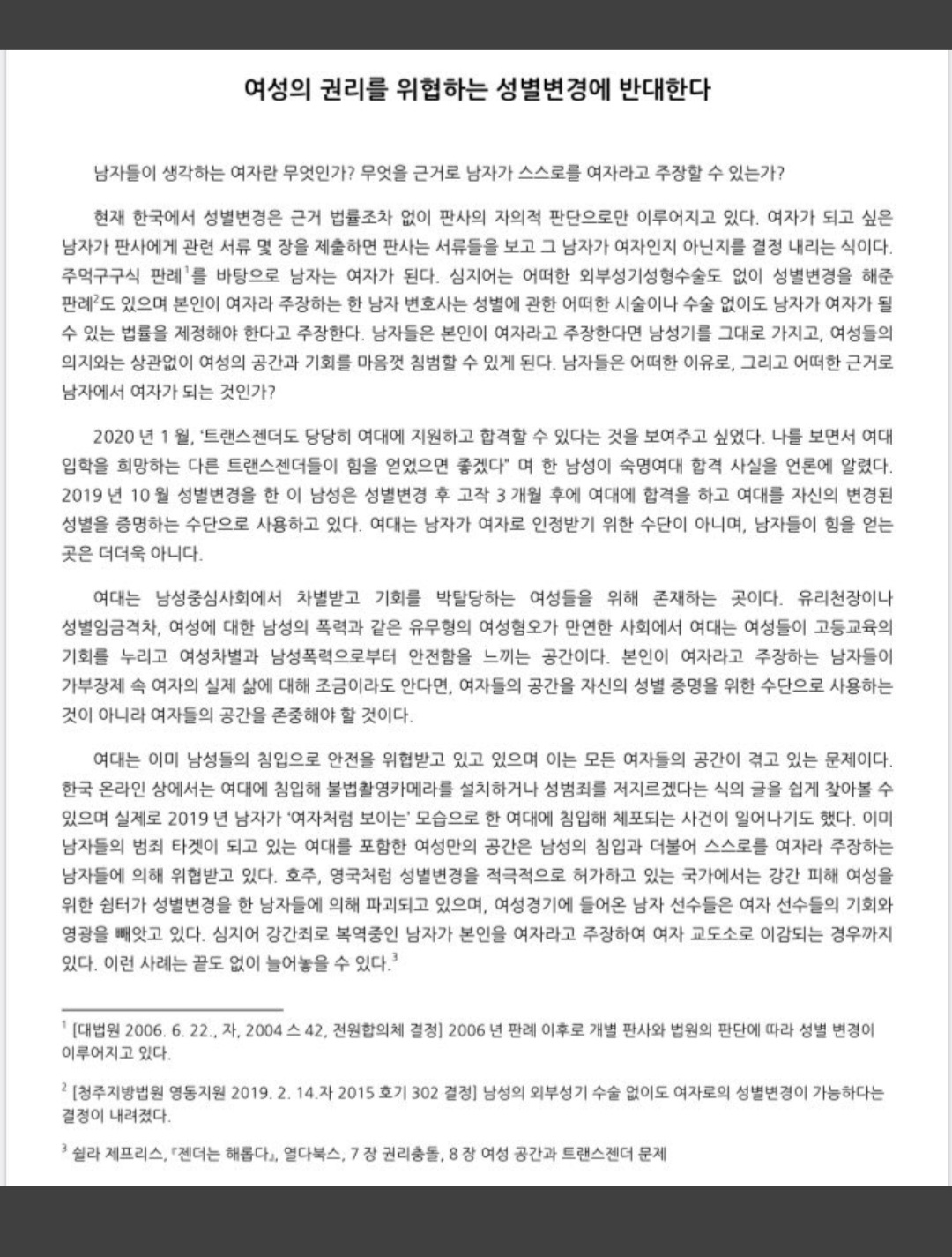 서양권 페미니스트들의 트랜스젠더에 대한 생각.