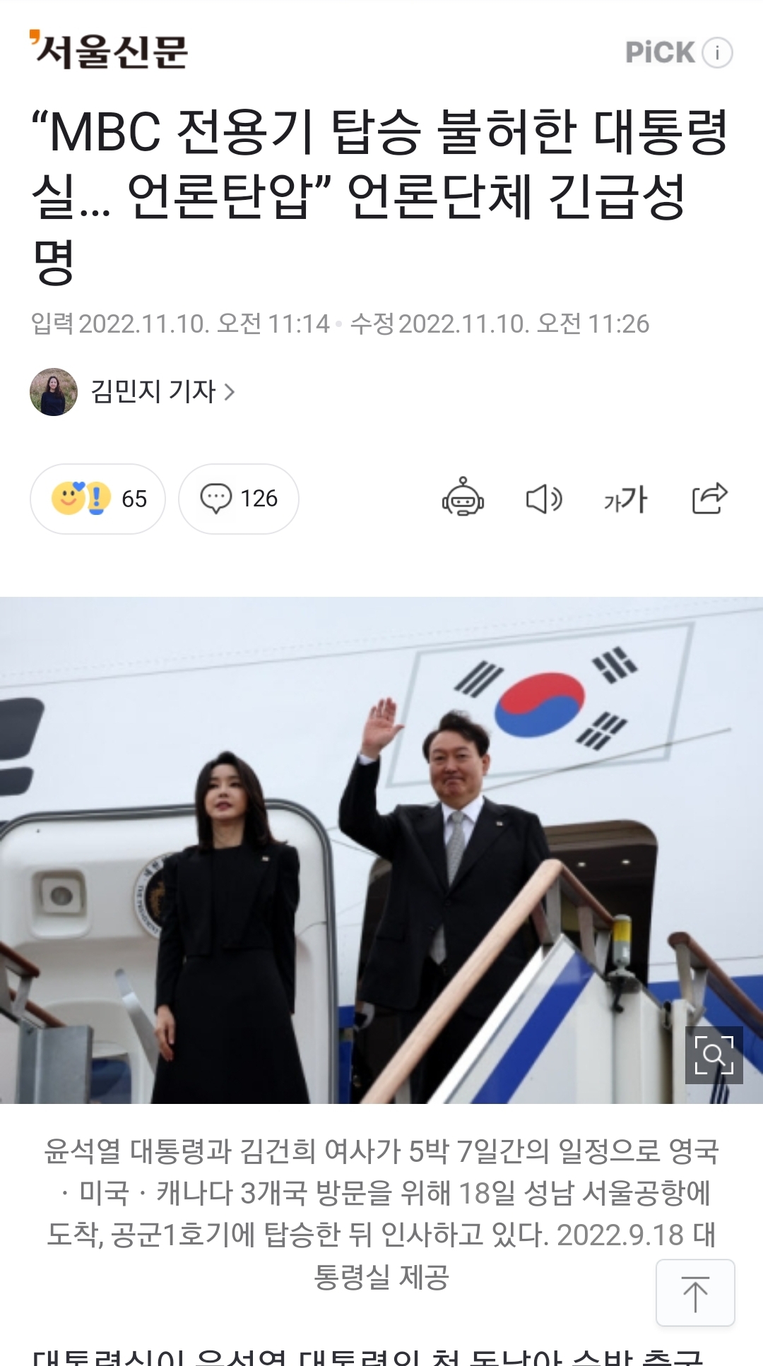 언론의 자유 탄압했을거면 진작에 대통령실 출입기자단에서 배제되었거나 이번 순방 취재를 금지 때렸을듯