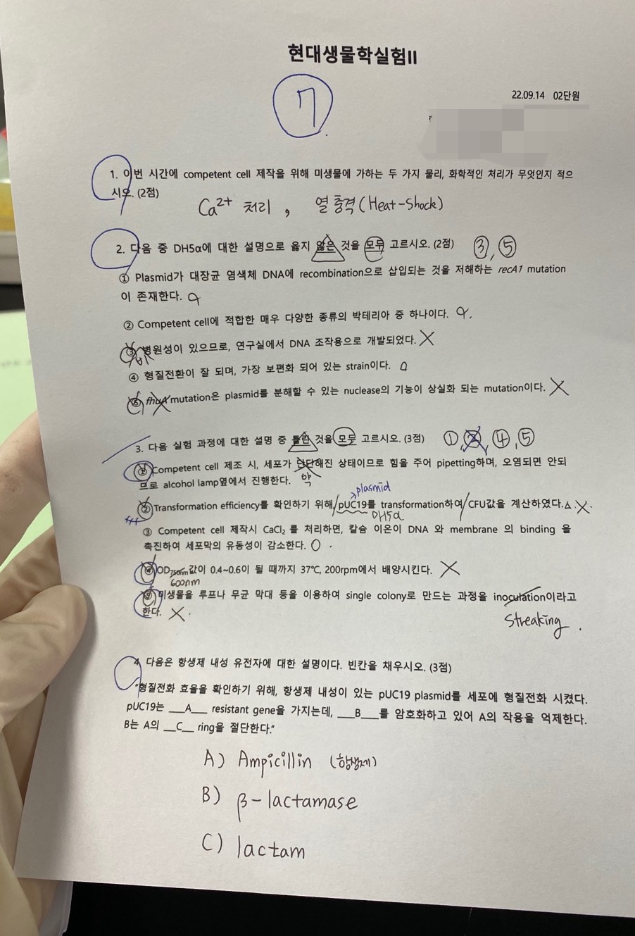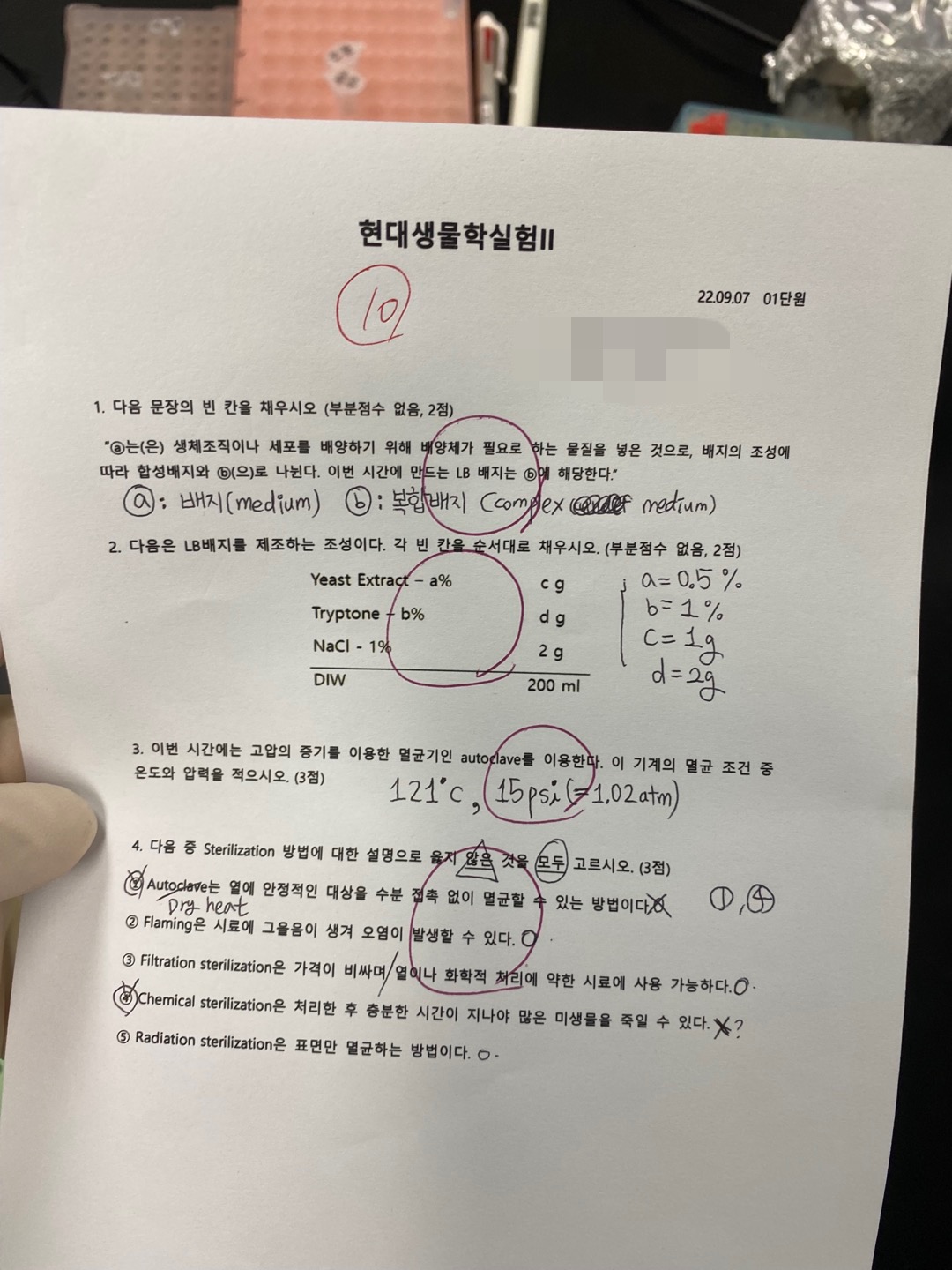 김성룡/현대생물학실험2/2022년 2학기/1-3단원 퀴즈