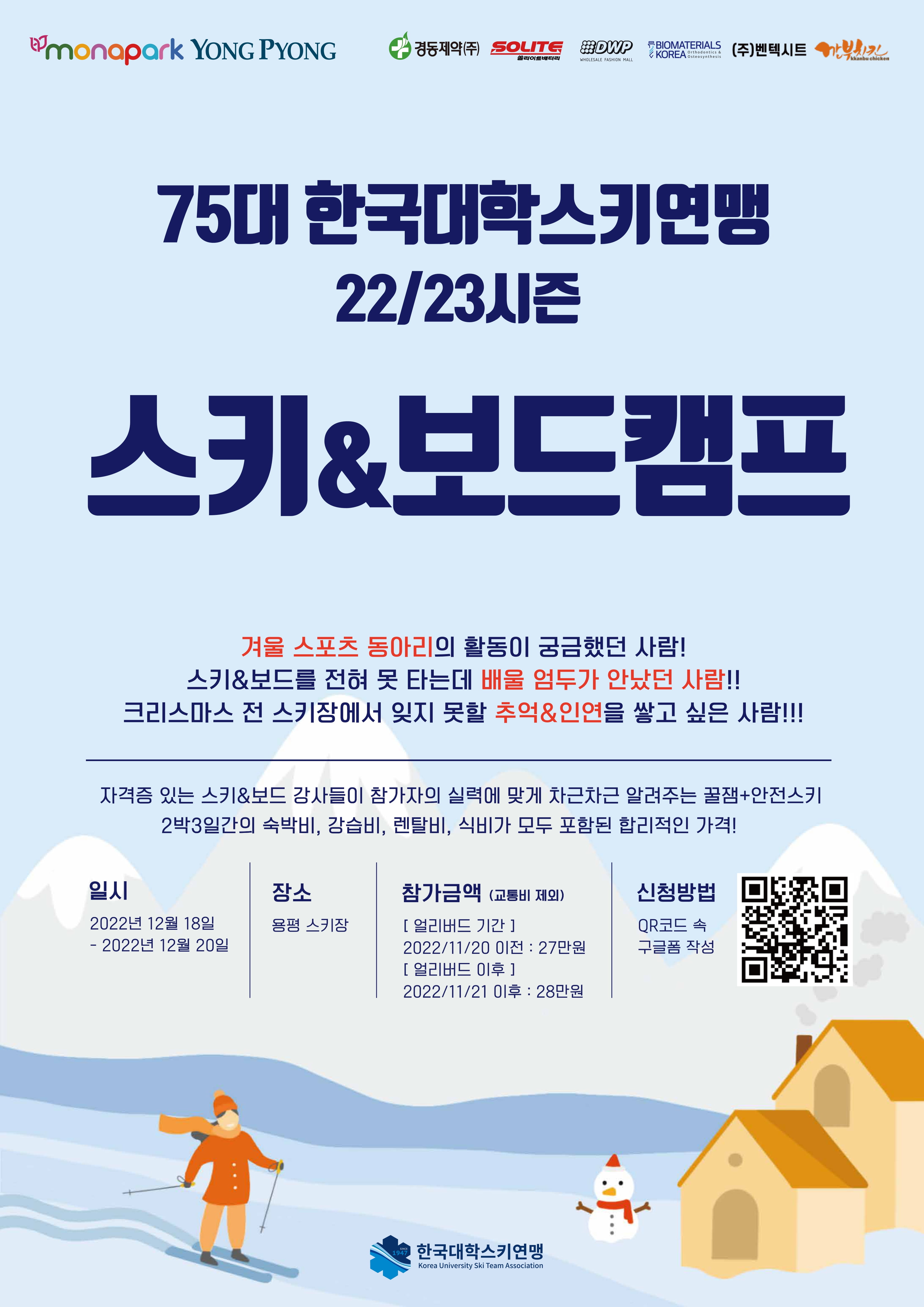 [스키&보드캠프]75대 한국대학스키연맹 학생위원회 22/23시즌 스키&보드캠프 참가자 모집 안내