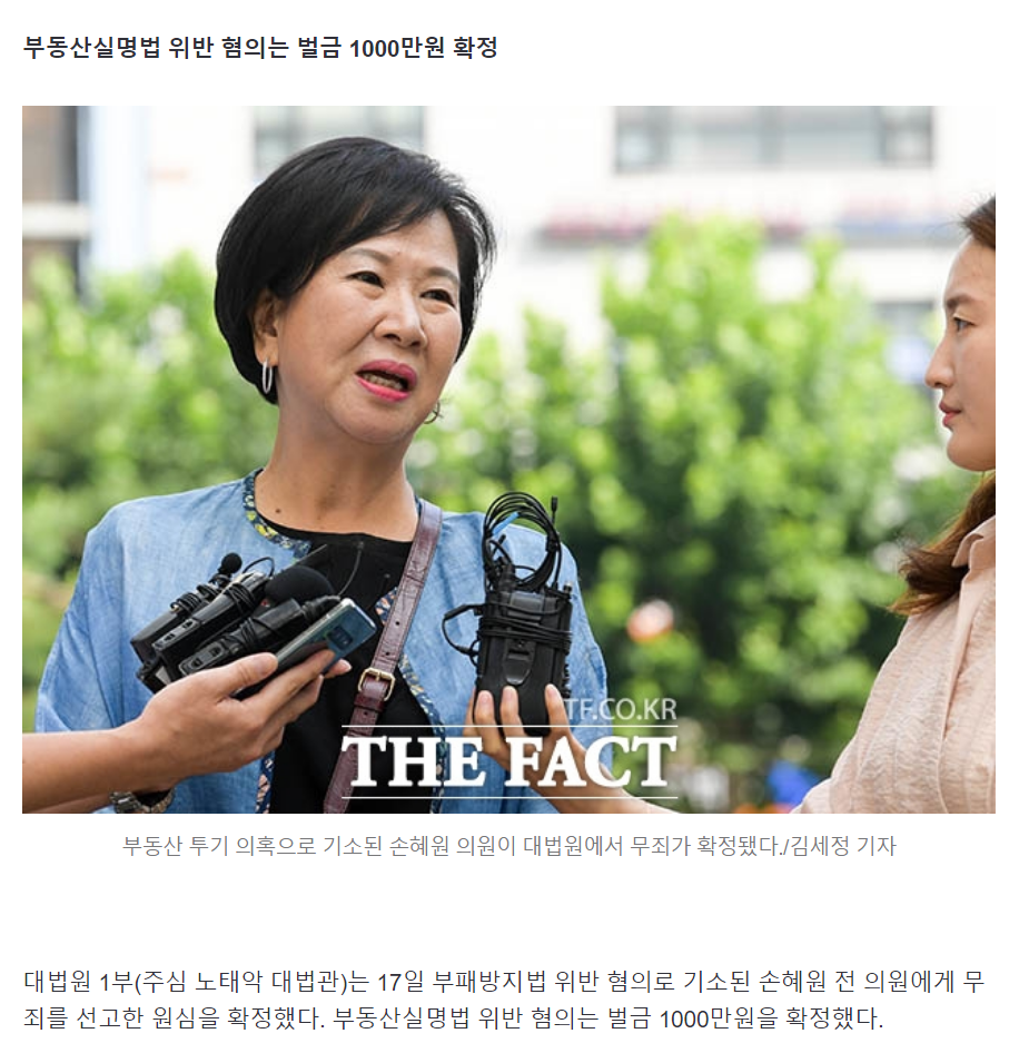 차명 매입 혐의가 인정돼서 부동산 실명법 유죄 선고가 된 건데; 의원이 차명 매입을 한 것도 문제지