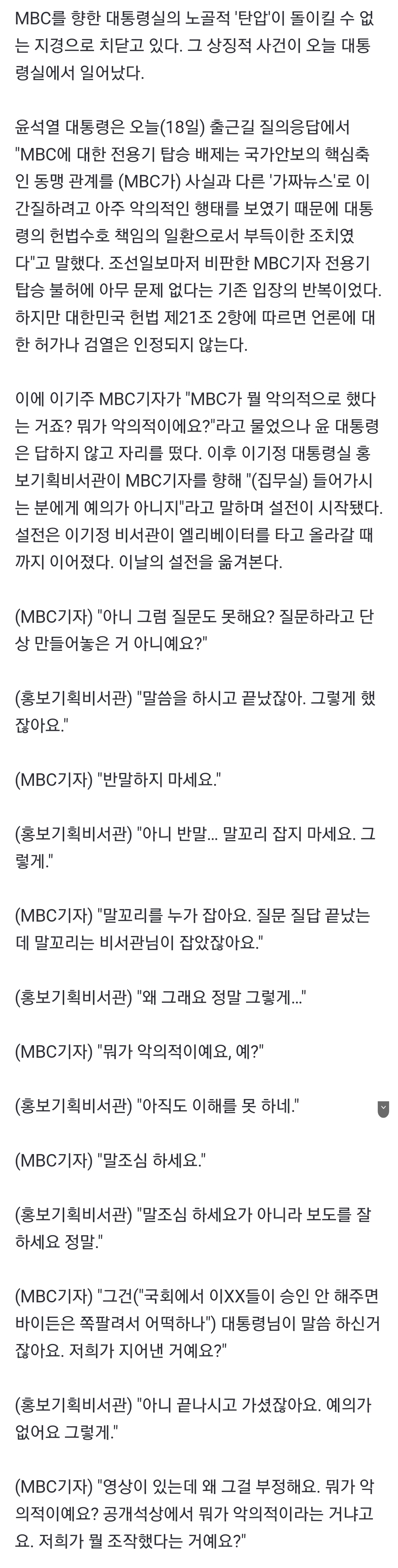 이건 윤석열이 잘못한거아닌가..? 전용기가 자기꺼도 아니고 나라소유인데 특정 언론사 배제는 선 넘은게 맞음