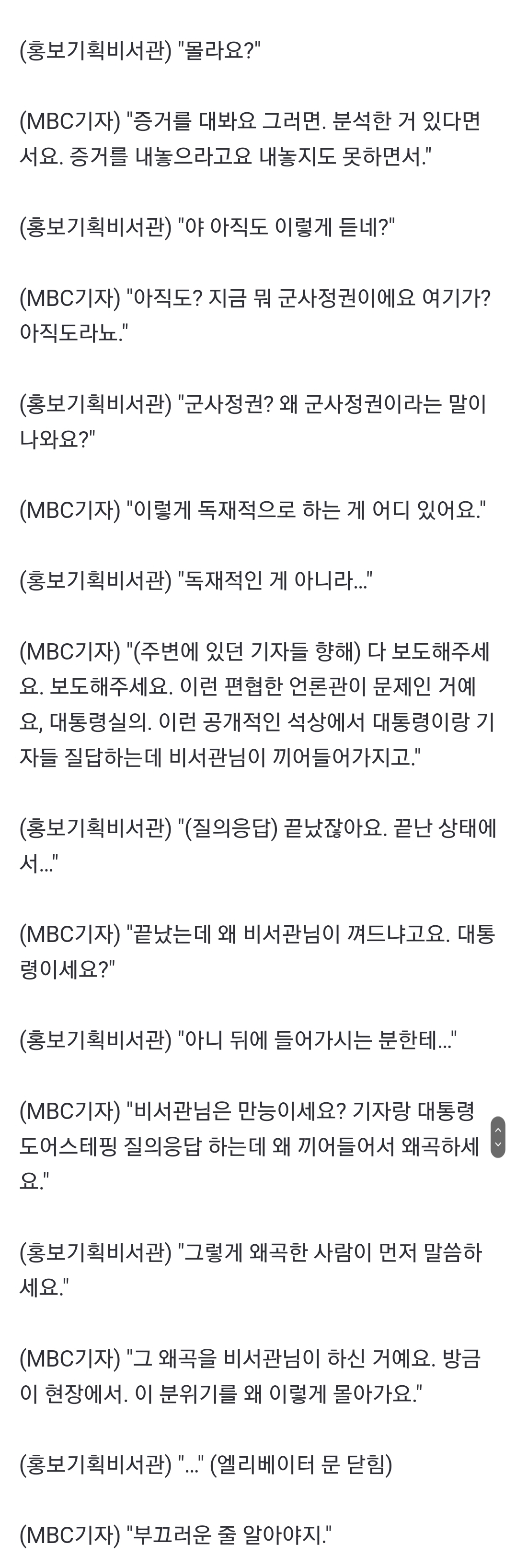 군사정권이면 mbc는 진작에 해체됐고, 고위관계자는 전부 고문받고 있고, 저 기자는 내일 변사체로 발견되겠지ㅋㅋㅋ