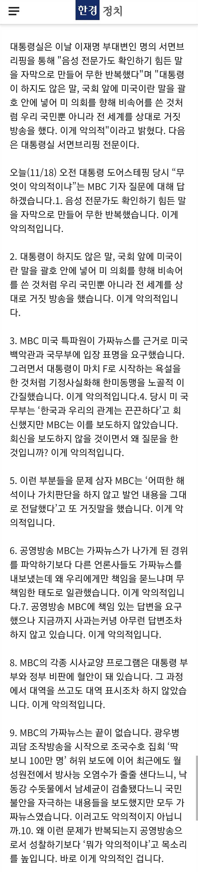 지들한테 불리한 거(ex. 백악관에서 한미관계 끈끈하다고 mbc에 답변 보낸 것)는 싹 빼고 보도함