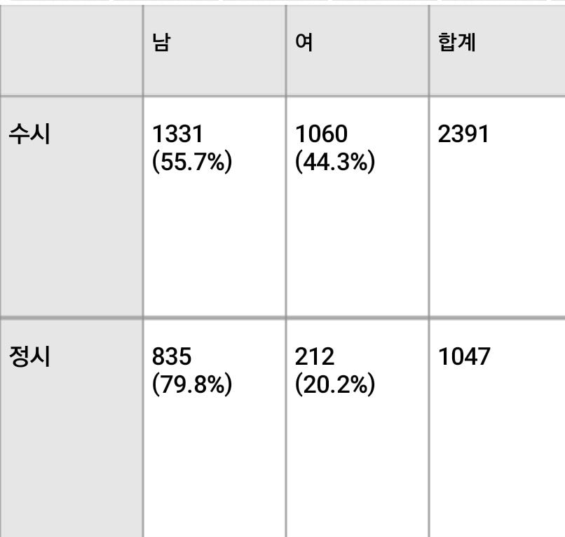 일본 도쿄대는 그냥 올 정시라서 전체 학생 성비가 8대2임