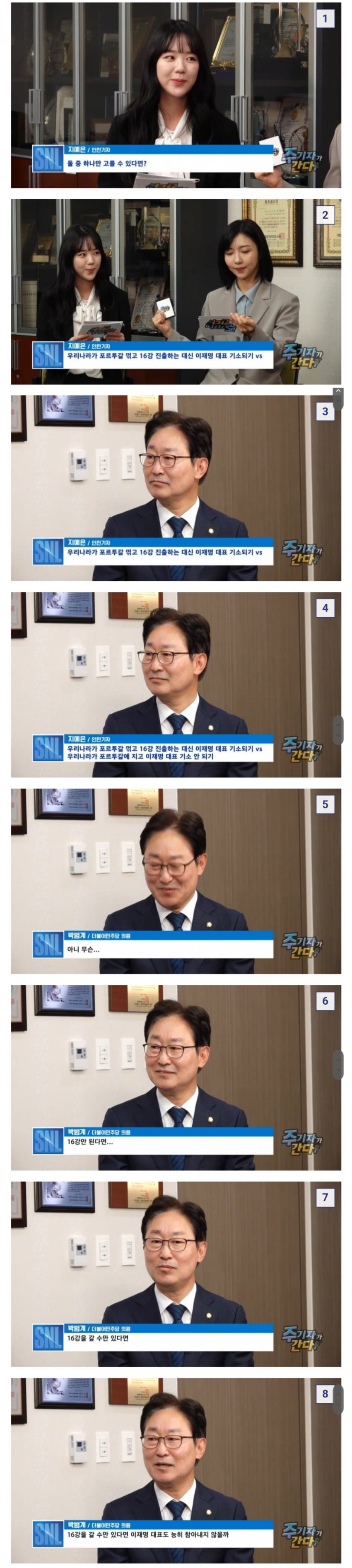 질문 수준이 병신이긴 한데 박범계도 저런 ㅂㅅ같은 질문하는 채널인 거 알고 출연했을거니까 뭐... 저런 질문이 두려웠으면 출연을 안했어야ㅋㅋㅋ