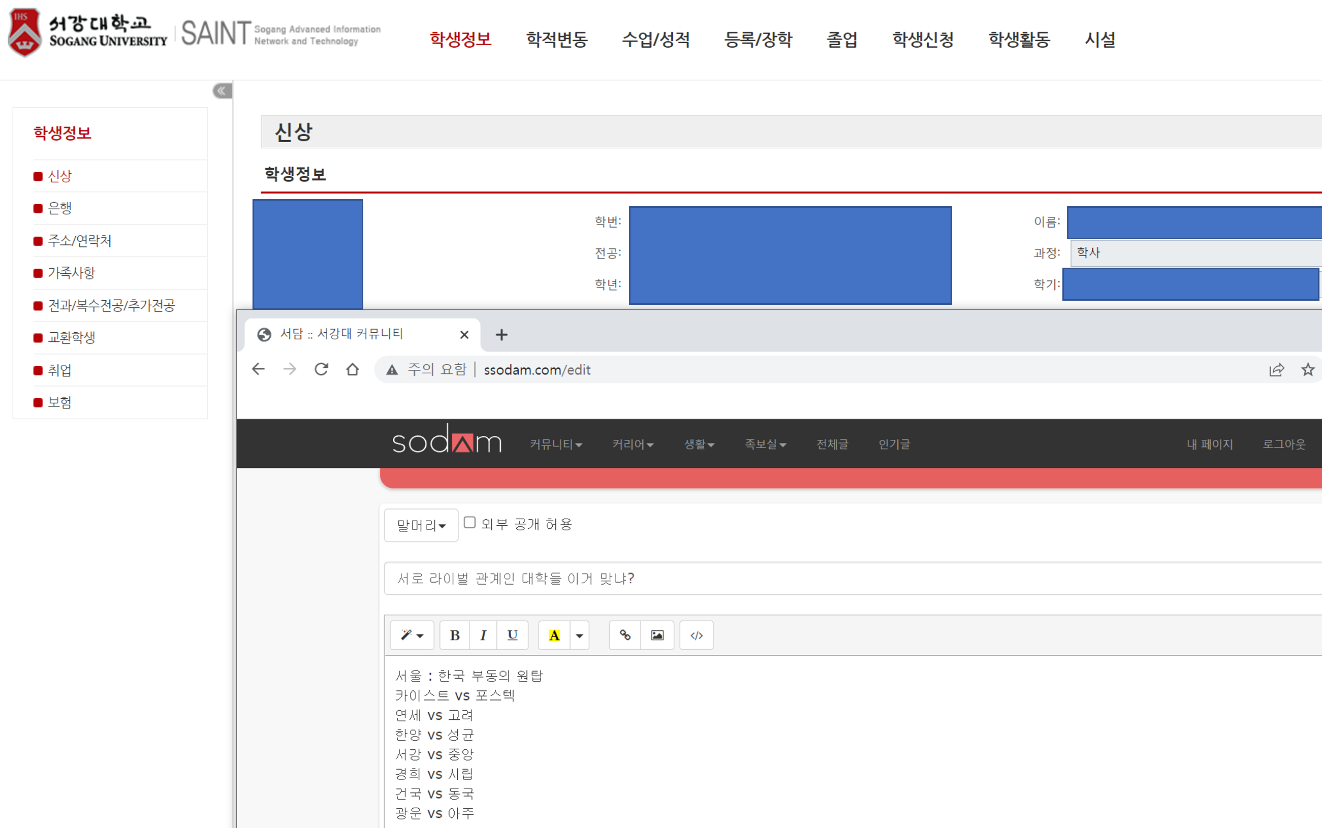 포스텍은 내려갈것 같고 서강은 앞으로 그렇게 될수도